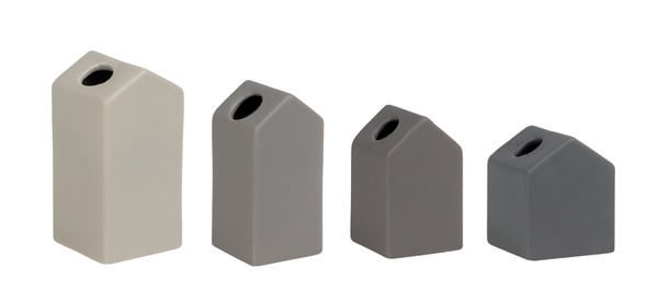 ZUHAUSE Vasen Gartenhäuschen 4er Set, H 5,5-8,5cm, aus Porzellan, grau, 16226,1 Set
