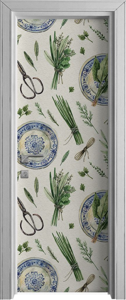Tür Selbstklebende 80x210 cm Türfolie Türtapete Klebefolie - Gartenkräuter Bündel Spinat