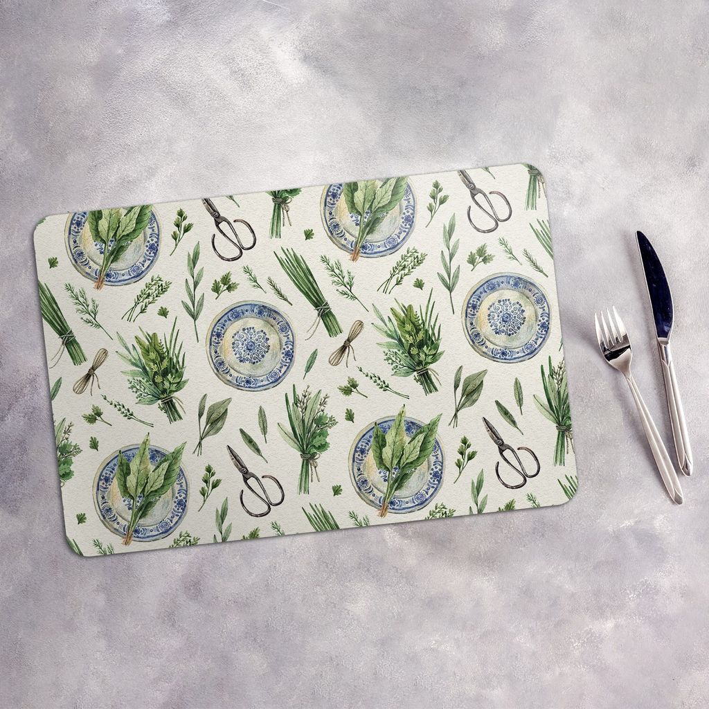 Tischset 6x45x30 cm Platzset Tischmatte Platzmatte Untersetzer - Gartenkräuter Bündel Spinat