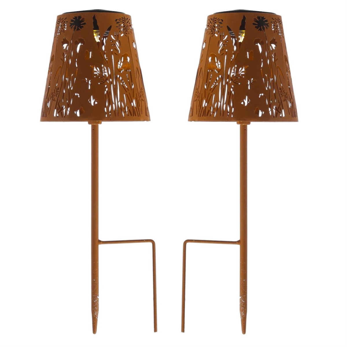 MARELIDA LED Solar Gartenleuchten Blumenmuster Gartenstecker rostbraun 2St.
