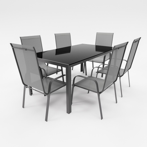 Lex Gartenmöbel Set Metall Tisch 6 Stapelsessel Essgruppe Gartenset Sitzgruppe Stuhl anthrazit : Anthrazit