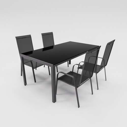 Lex Gartenmöbel Set Metall Tisch 4 Stapelsessel Essgruppe Gartenset Sitzgruppe Stuhl schwarz : Schwarz