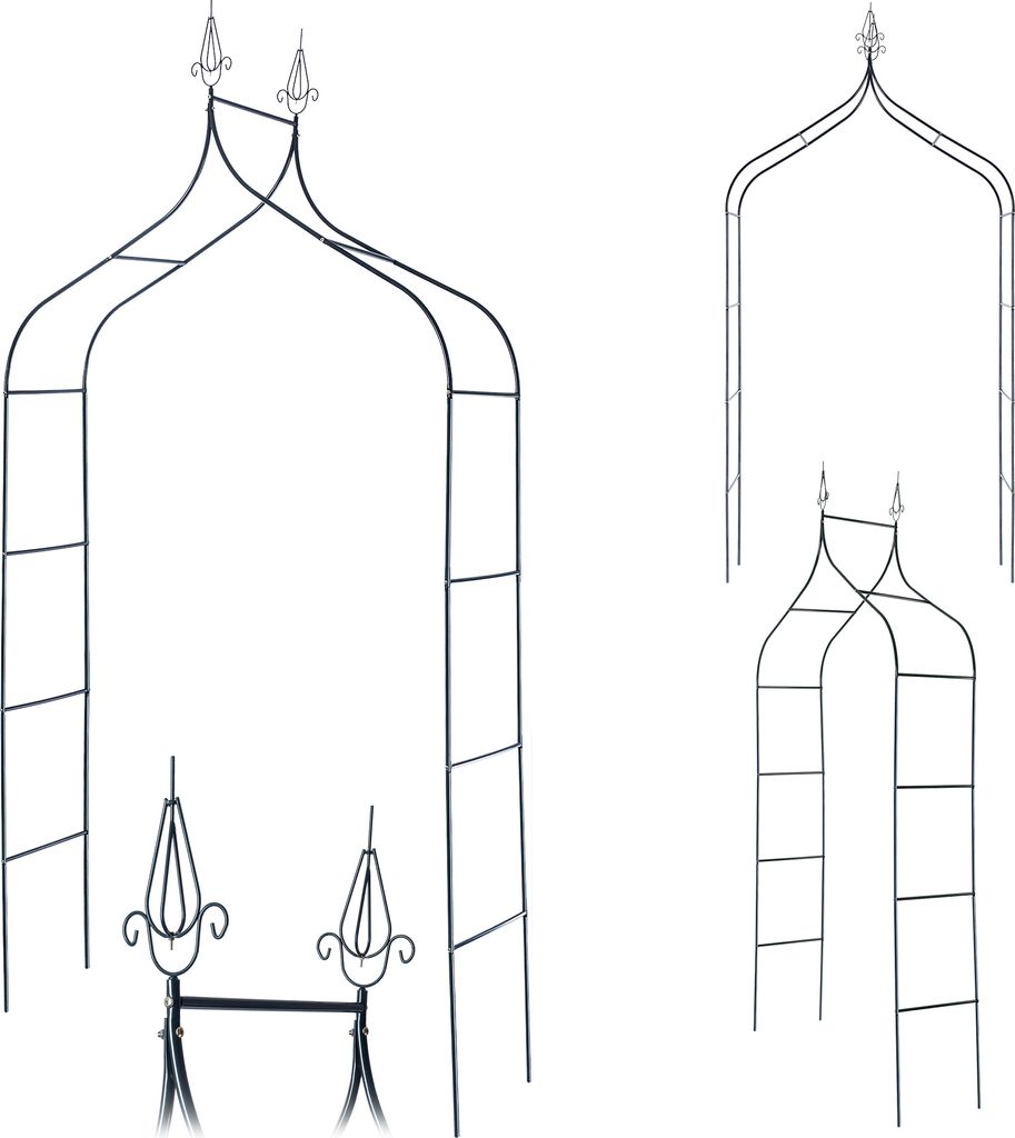 Gartenpergola - Metall Rosenbogen - Für Kletterrosen und Rankpflanzen - Robuste Pflanzenstütze - Höhe 255 cm - Schwarz