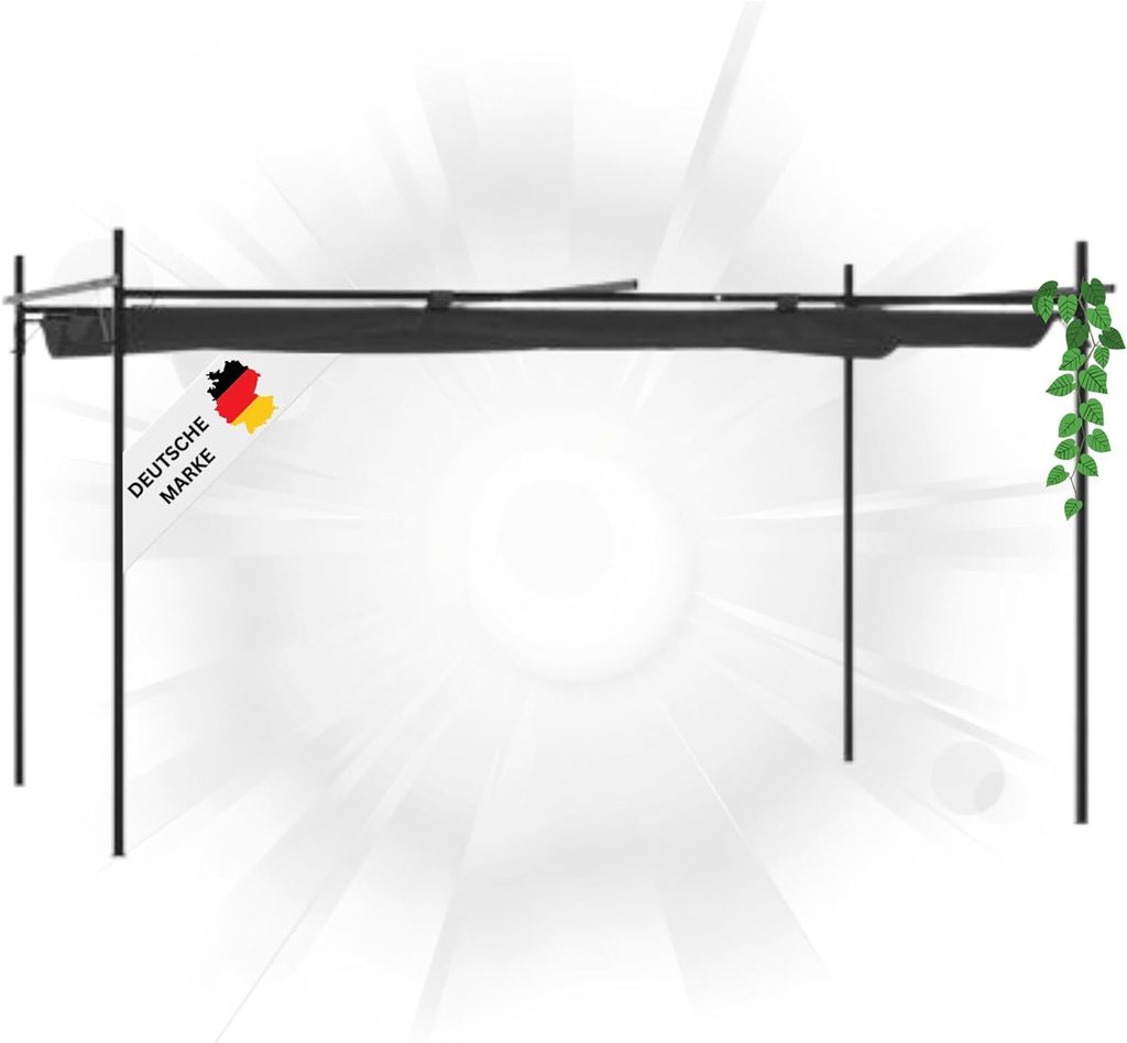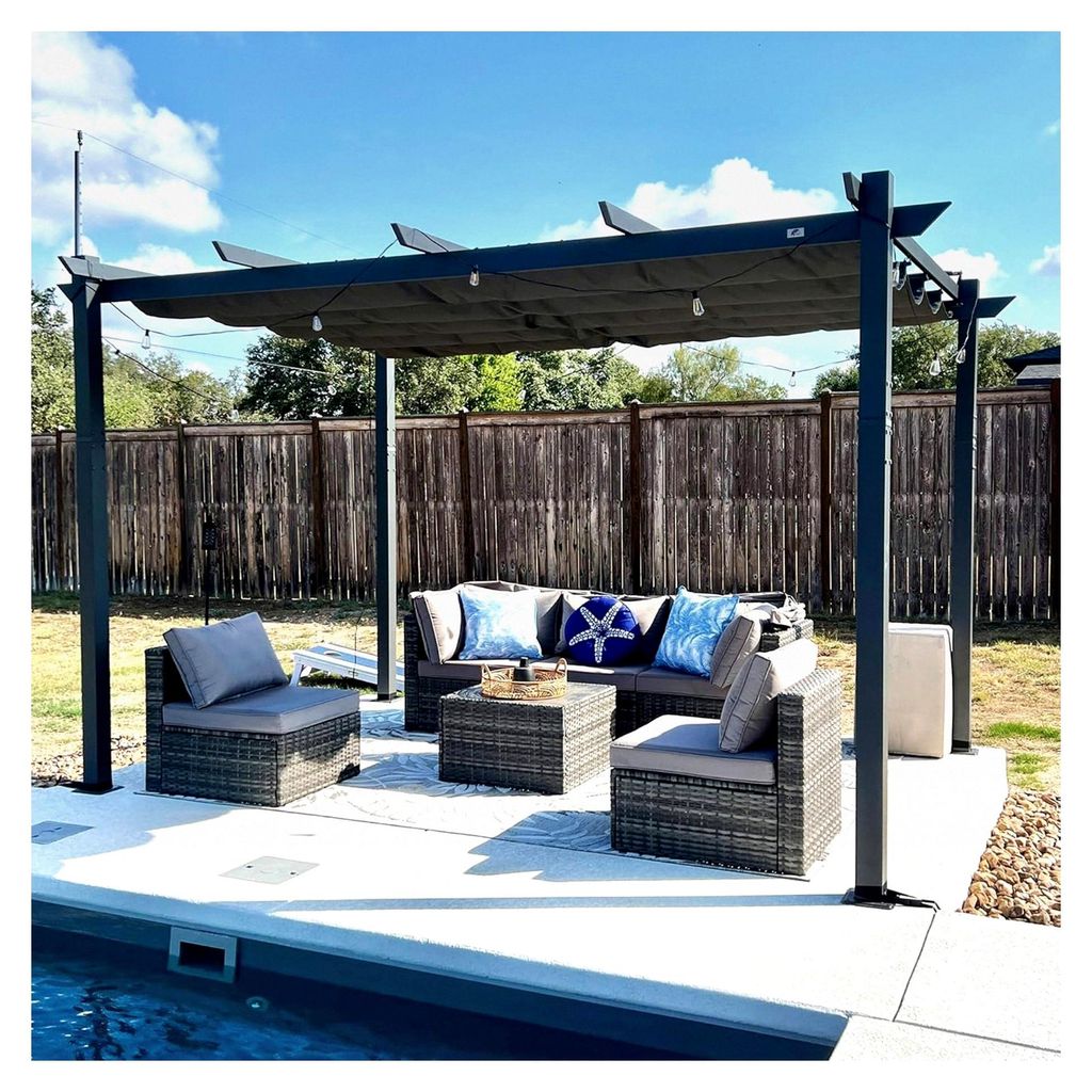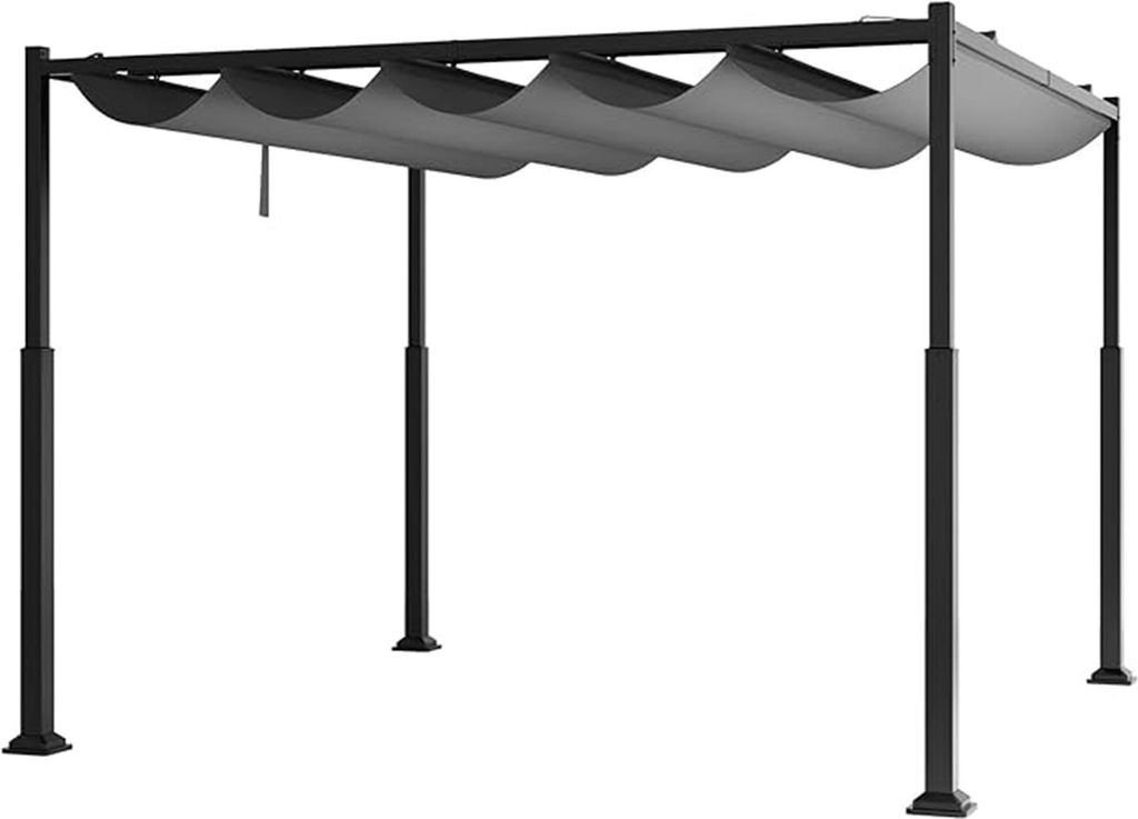 310 x 310 cm große ausfahrbare Gartenpergola, Metallüberdachung mit einziehbarem Sonnenschutzdach & stabilen Säulen, Unterstand, Grau + Schwarz