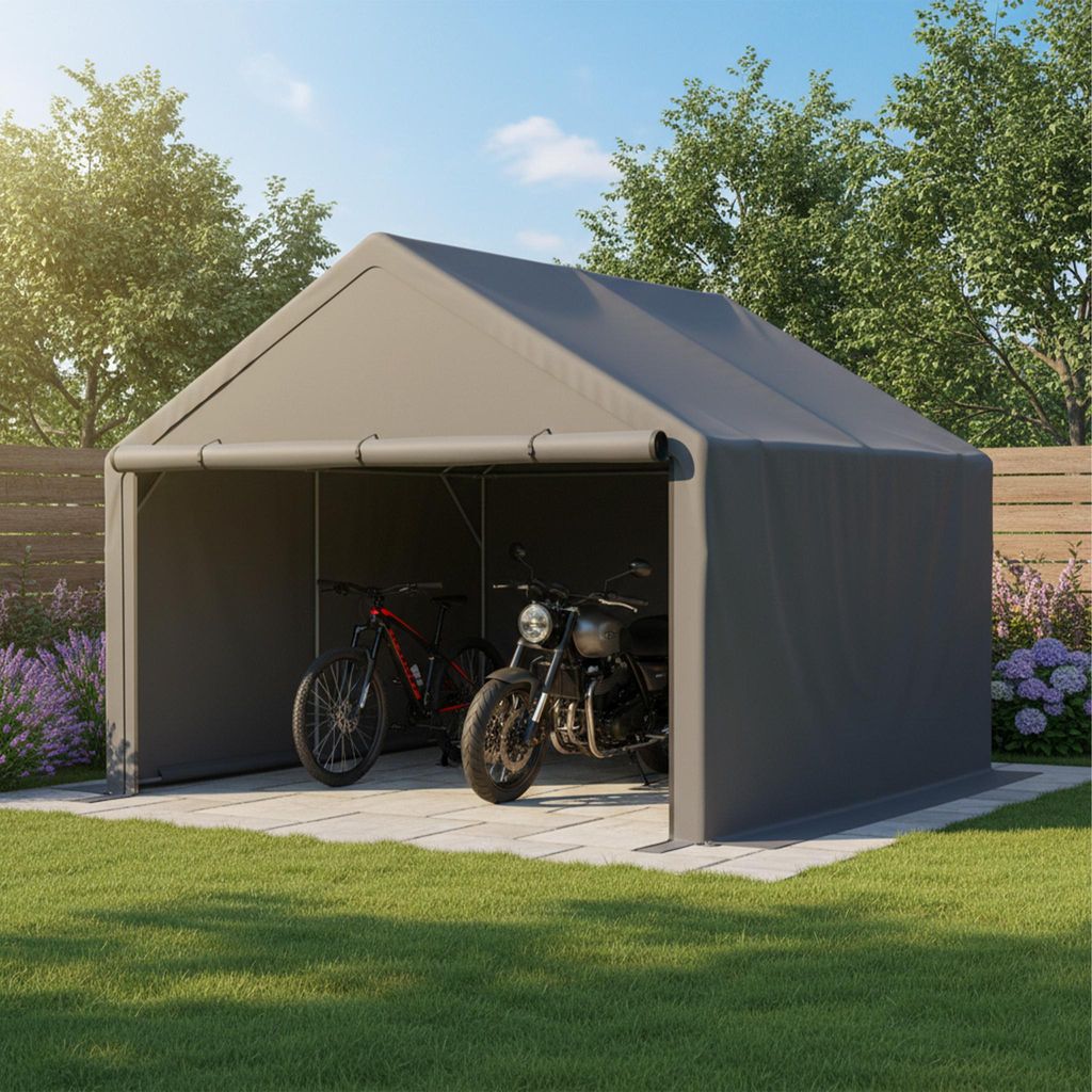 Gartenpergola,305x296x233 cm Markise,Fahrradschuppen – Komplettlösung für Außenlagerung, mit Stauraum für Werkzeug & Gartengeräte , grau