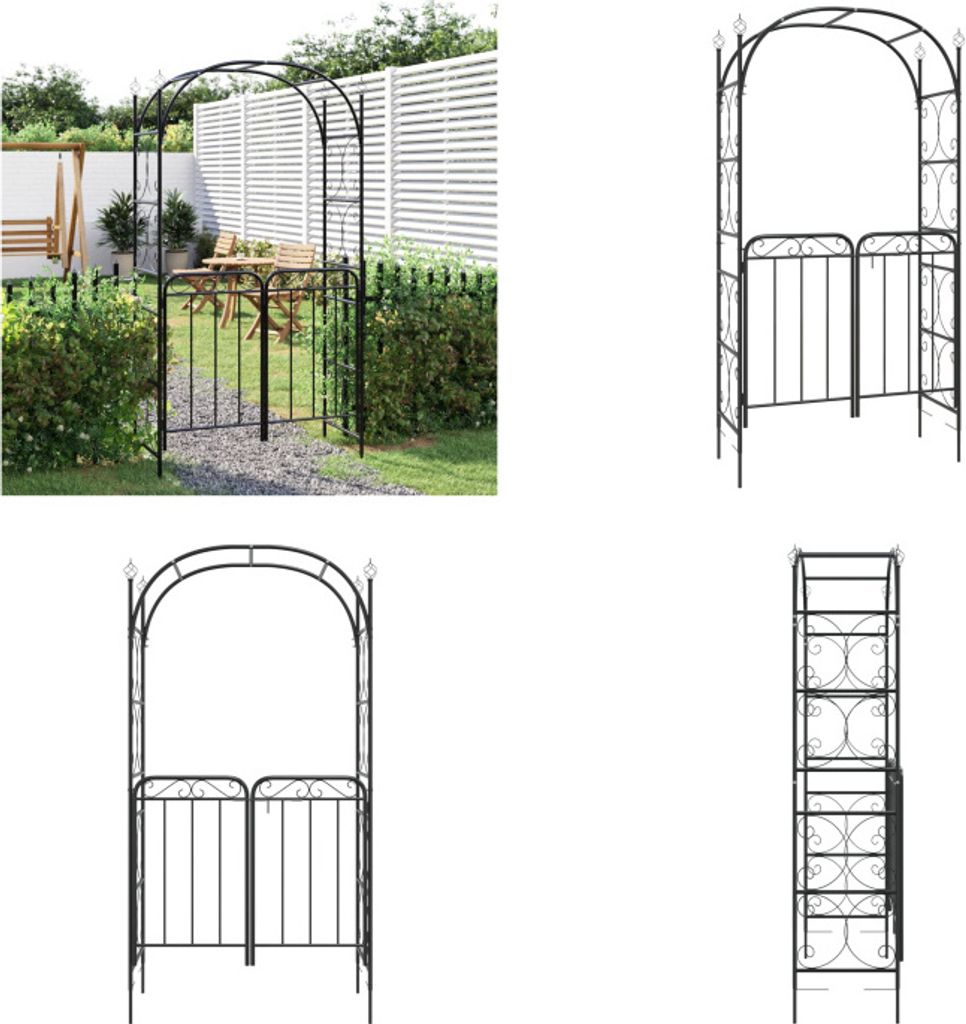 vidaXL Gartenbogen mit Tor Schwarz 108x45x235 cm Stahl - Gartenbogen Mit Tor - Gartenbögen Mit Toren - Gartenbogen - Gartenpergola
