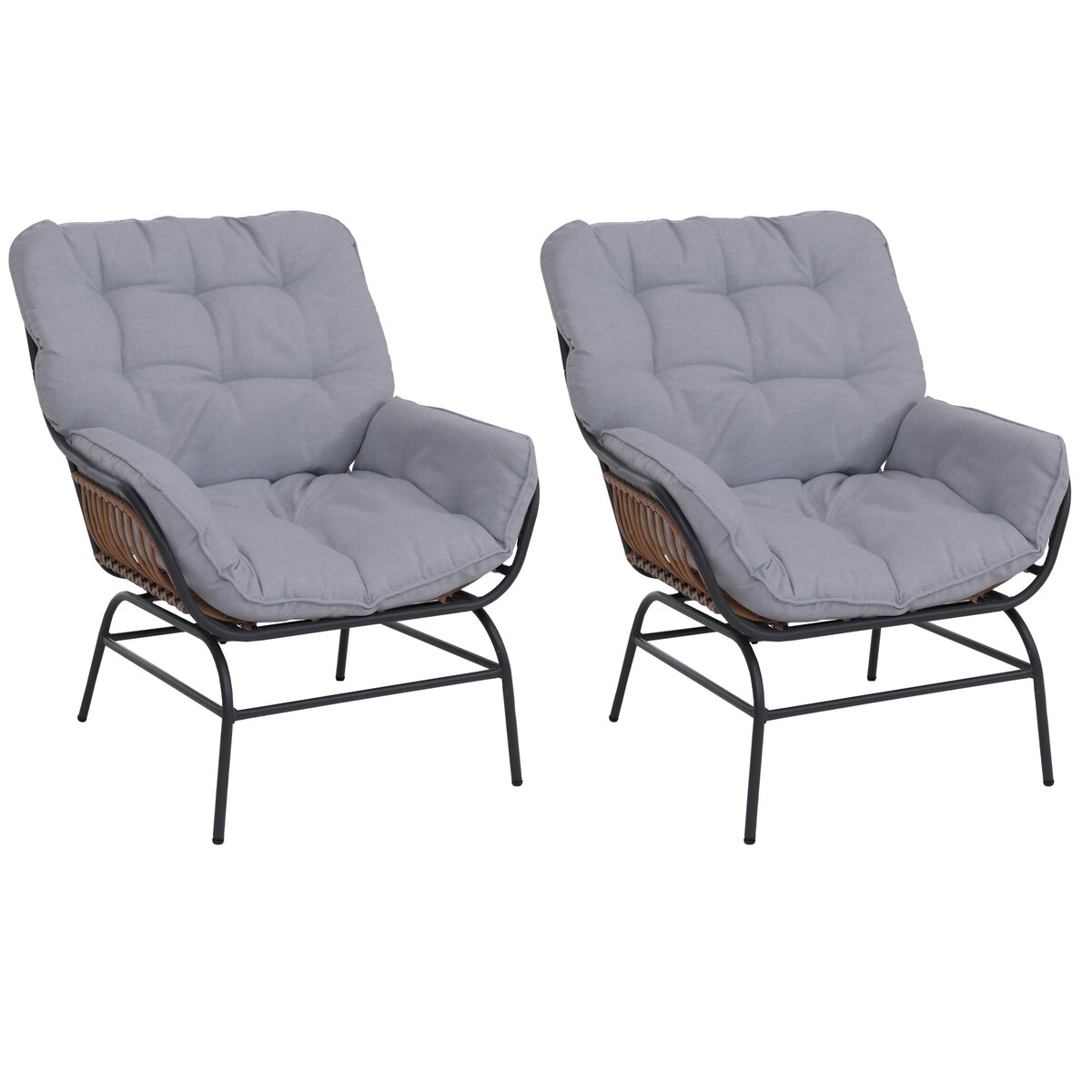 Outsunny Rattan Relaxsessel mit Fußhocker, Gartensessel mit dicke Kissen Outdoor Rattanstuhl Gartenstuhl für Garten, Balkon, Terrasse Grau