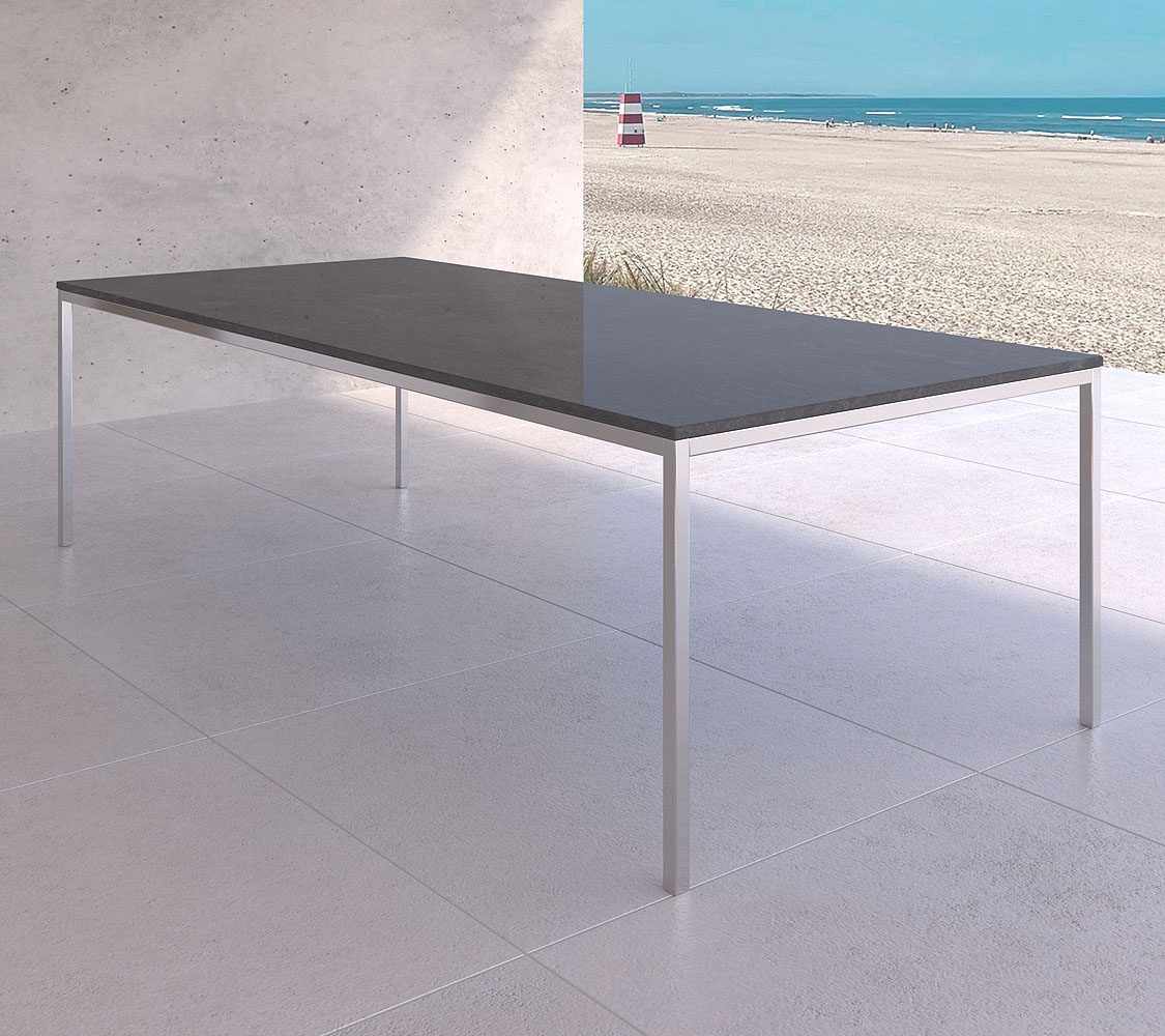 wetterfester Gartentisch mit grauer Platte und Metallgestell V2A von klein bis extragroß konfigurieren plus Ansteckplatten von Ricon