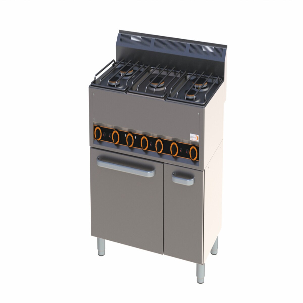 orange Gas-Herd Serie 70, 6 Brenner, mit Gas-Backofen und geschlossenem Schrank, 48 kW