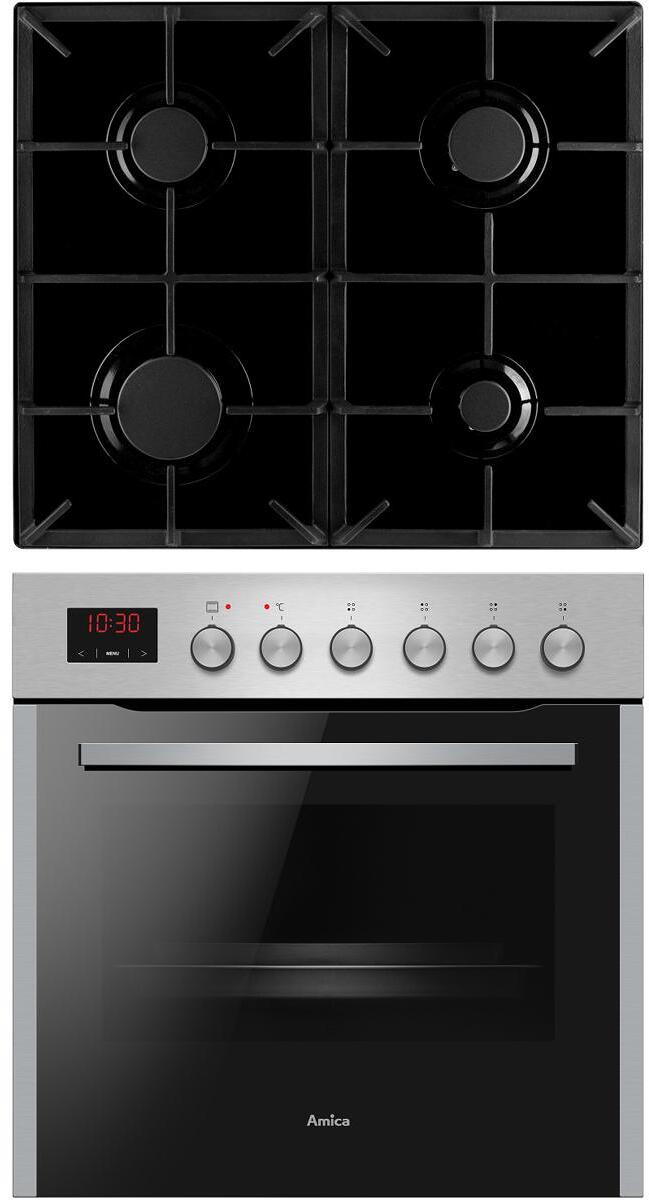 Amica EHEG 934 112E Gas-Einbau-Herd-Set 60cm breit 65 Liter Timer Heißluft CoolDoor3 SoftClose edelstahl