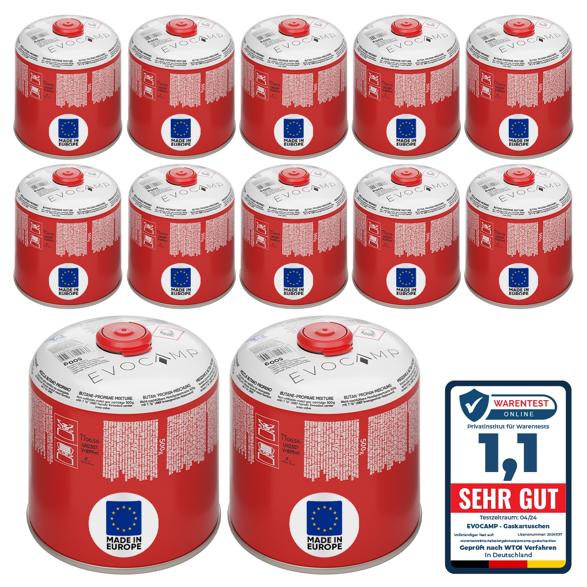 EVOCAMP 8x Propan Butan Gaskartusche 190g Stechgaskartusche für Gaskocher Gasbrenner mit Sicherheitsventil Typ 200 EN 417