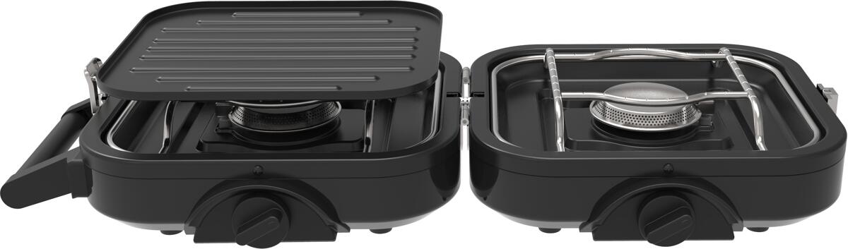 Clanmacy Set Duo Faltbarer Gaskocher 2 flammig 4.6kw Campingkocher Camping Kitchen 2 Multi Cook Gaskocher Gasgrill + Gasschlauch