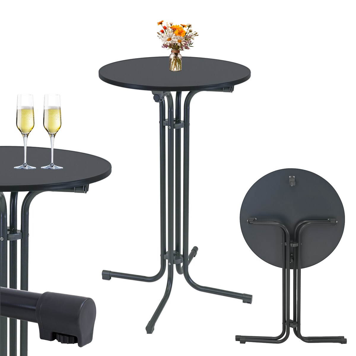 TRUTZHOLM Stehtisch klappbar Ø 70 cm Höhe 110 cm Stahl Gastrotisch Partytisch Bistrotisch in Anthrazit