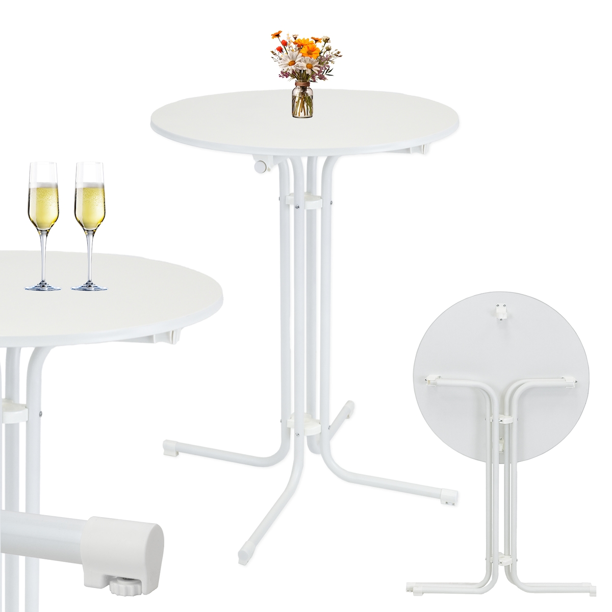 TRUTZHOLM Stehtisch klappbar Ø 70 cm Höhe 110 cm Stahl Gastrotisch Partytisch Bistrotisch Gartentisch in Weiß
