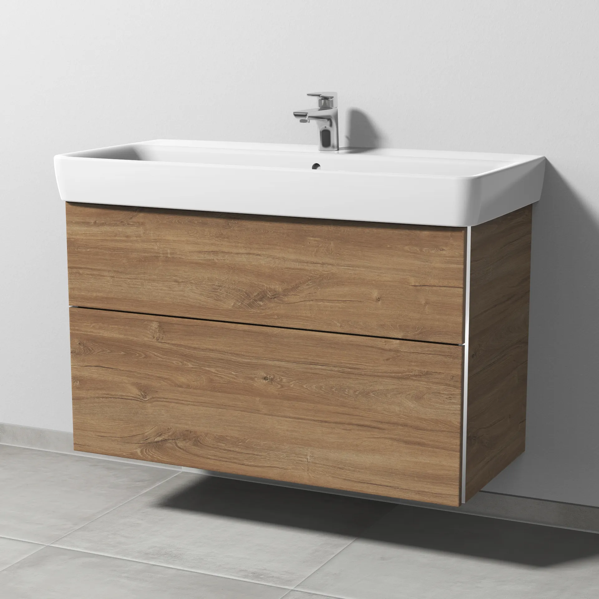 Megabad Lodge Doppel-Waschtischunterschrank 115 cm mit 2 Auszügen für Waschtisch Geberit iCon HMW12046D08KEIN120D, Badmöbel,