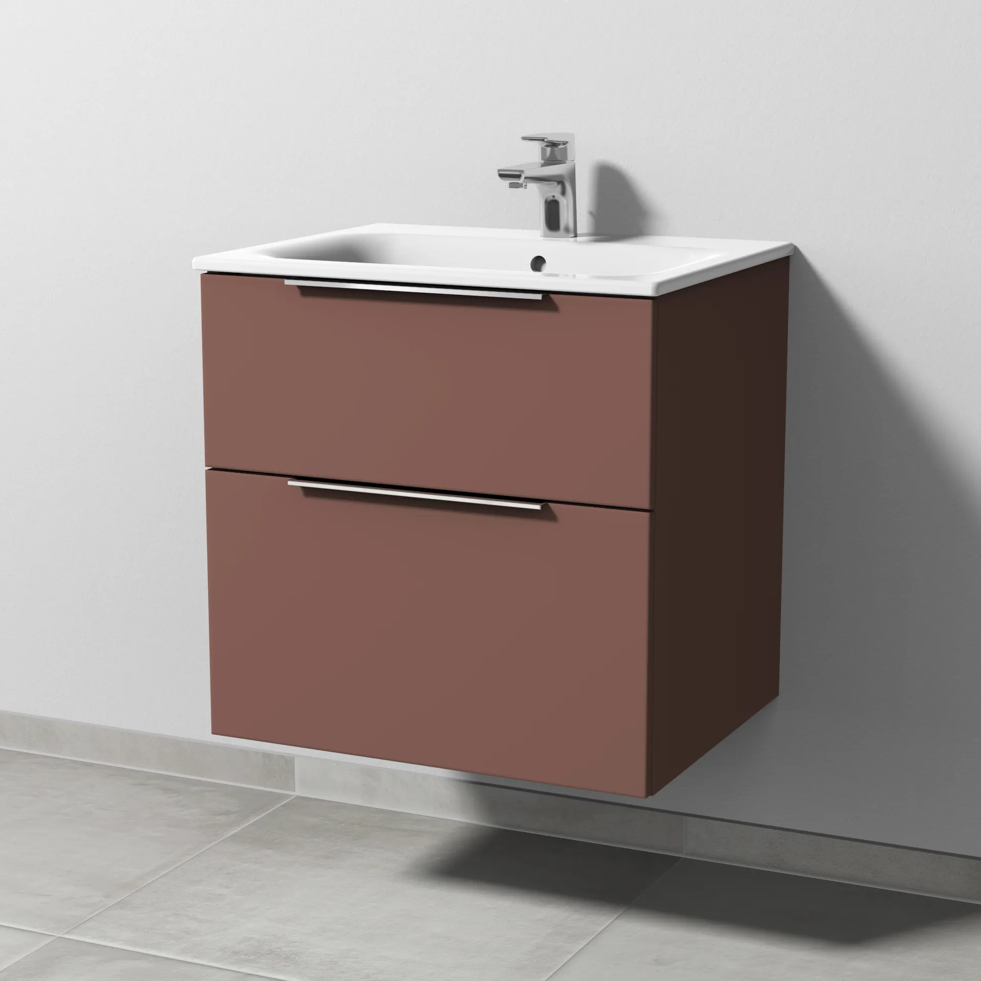 Sanipa Waschtischunterschrank „3way“ passend zu Keramik-Waschtische Renova Plan Slim von Geberit 585 × 582 × 472 mm in Wine-Red