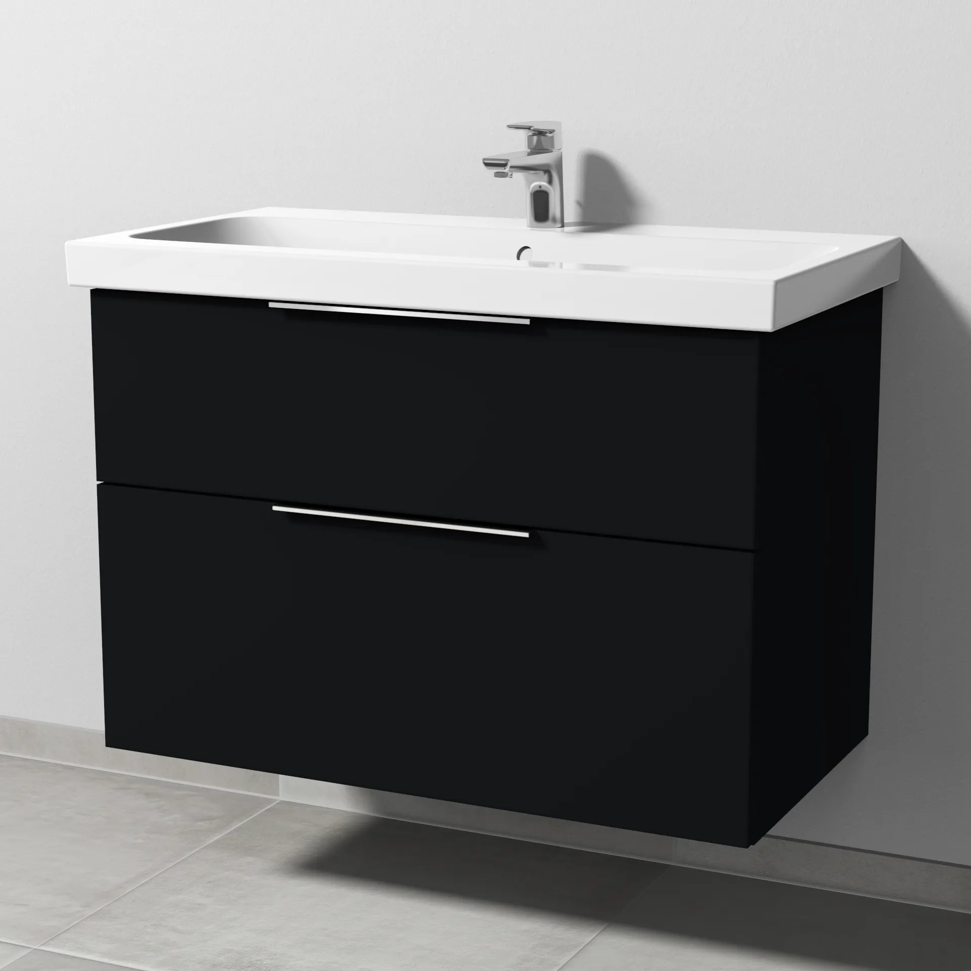Sanipa Waschtischunterschrank „3way“ passend zu Keramik-Waschtische iCon Light von Geberit 850 × 591 × 462 mm in Schwarz (matt), Becken mittig, mit