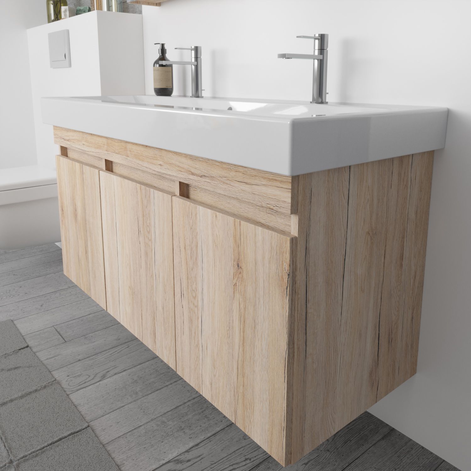 Sanipa Waschtischunterschrank „3way“ passend zu Keramik-Waschtische Renova Plan von Geberit 1240 × 588 × 407 mm in Eiche Nordic, Becken mittig