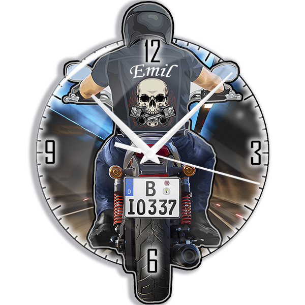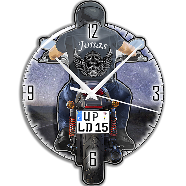 Personalisierte Motorrad Wanduhr mit Name und Nummernschild - Ideales Geburtstagsgeschenk für Mann, das Stil und Individualität hervorhebt.