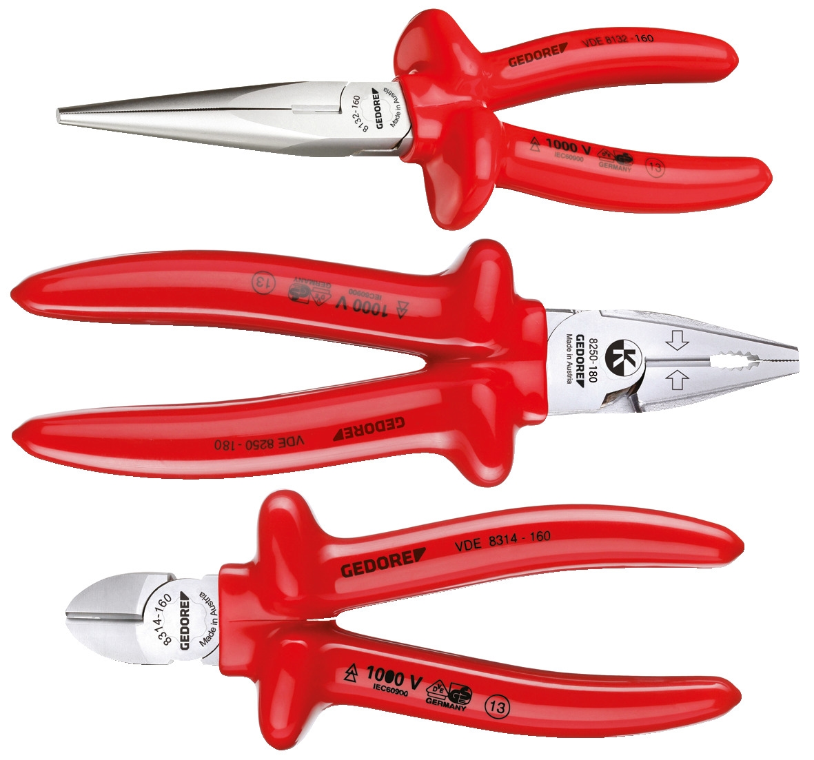 GEDORE VDE-Zangen-Satz mit Tauchisolierung 3-teilig, VDE S 8003