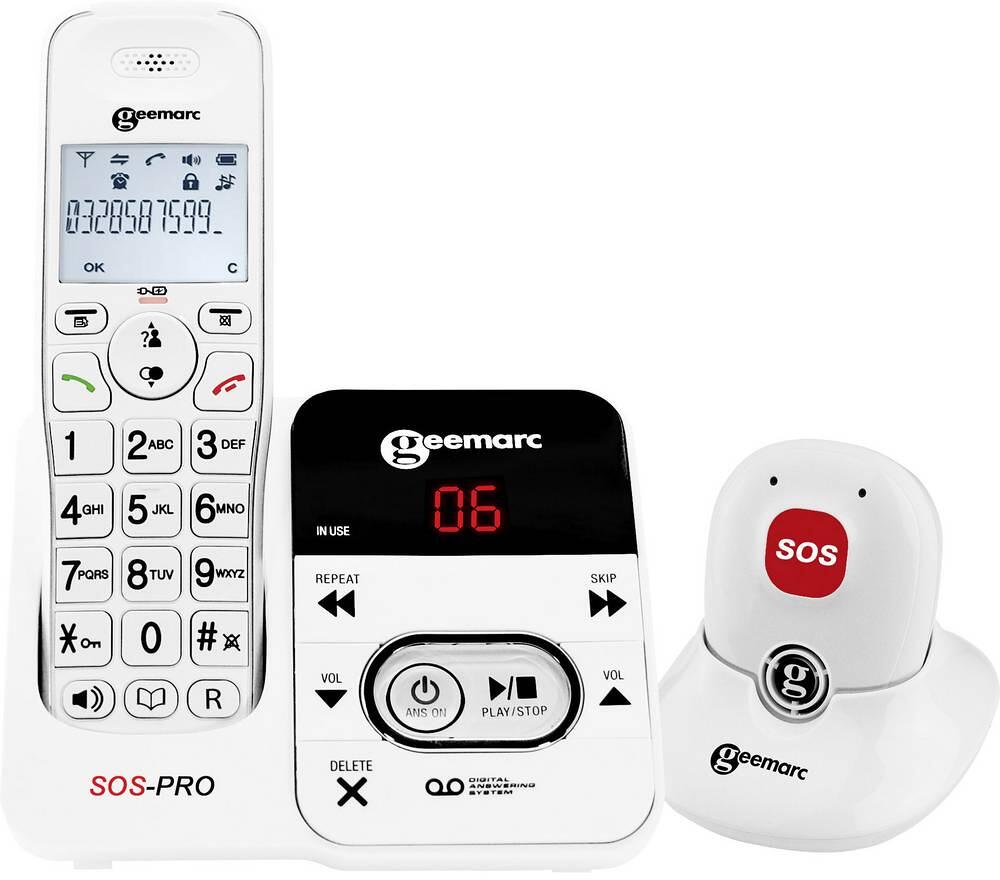 Geemarc, Festnetztelefon Senioren mit großen Tasten, Fotospeicher SOS-Armband, Weiß