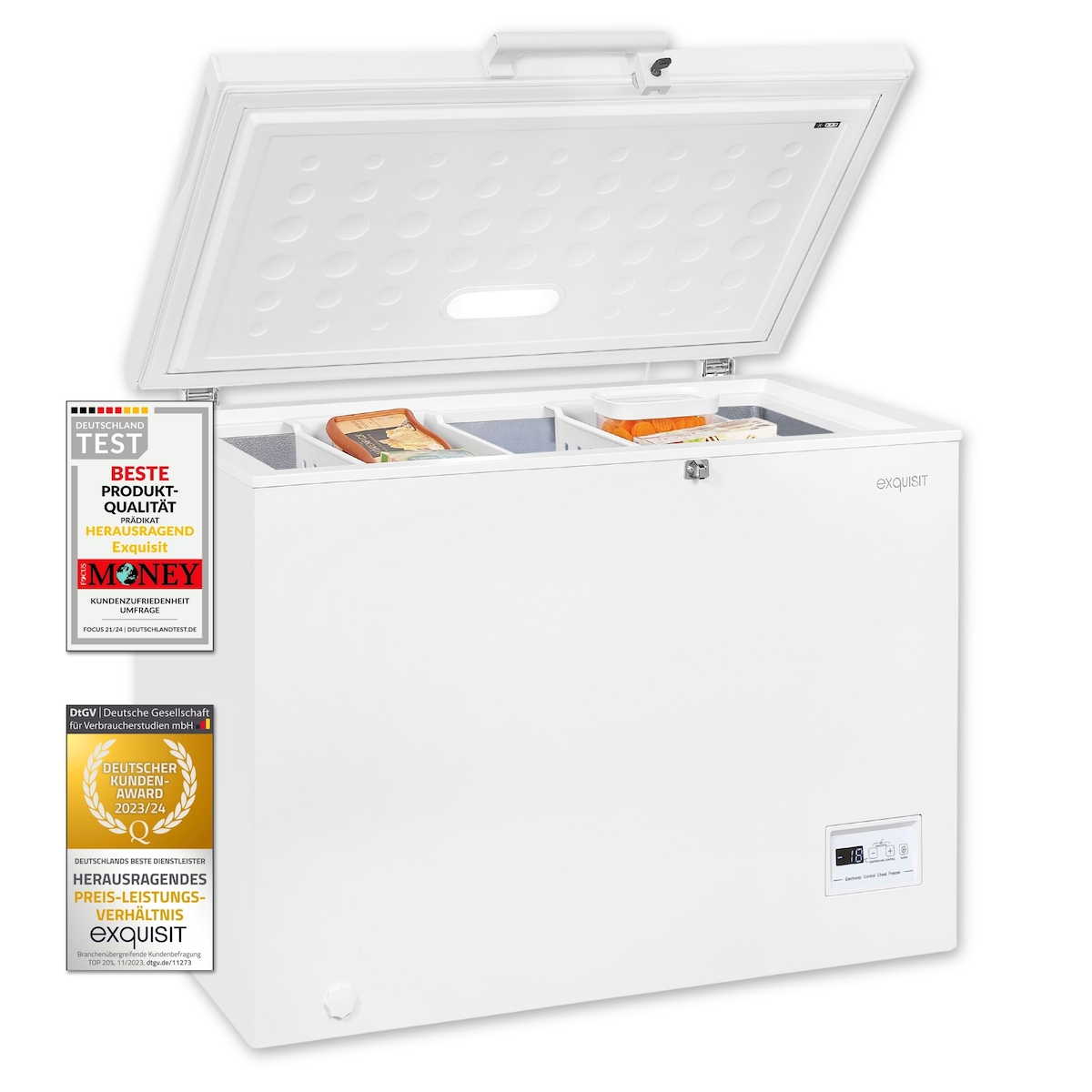 Exquisit Gefriertruhe GT265-HE-040D weiss | 254 l Nutzinhalt | 4-Sterne-Gefrieren | LED-Licht