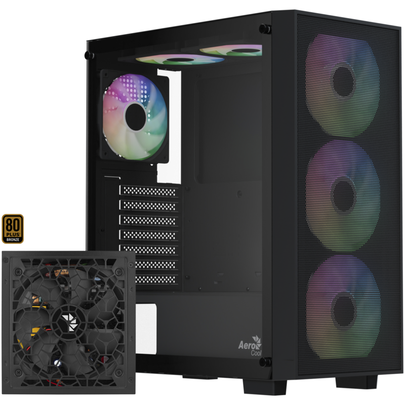 Aerocool B509A Flow-G-BK-v1, mit Netzteil Aero 650 Tower-Gehäuse, schwarz