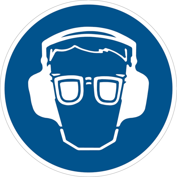 Gebotsschild, Gehörschutz und Augenschutz benutzen, praxisbewährt, Kunststoff, d = 200 mm