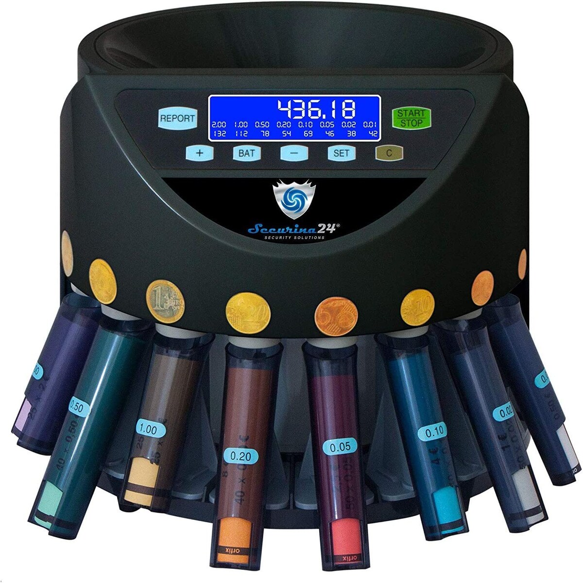 Securina24 Automatischer Euro Münzzähler & -sortierer Geldzählmaschine SR1200 Geldzähler Münzzählautomat