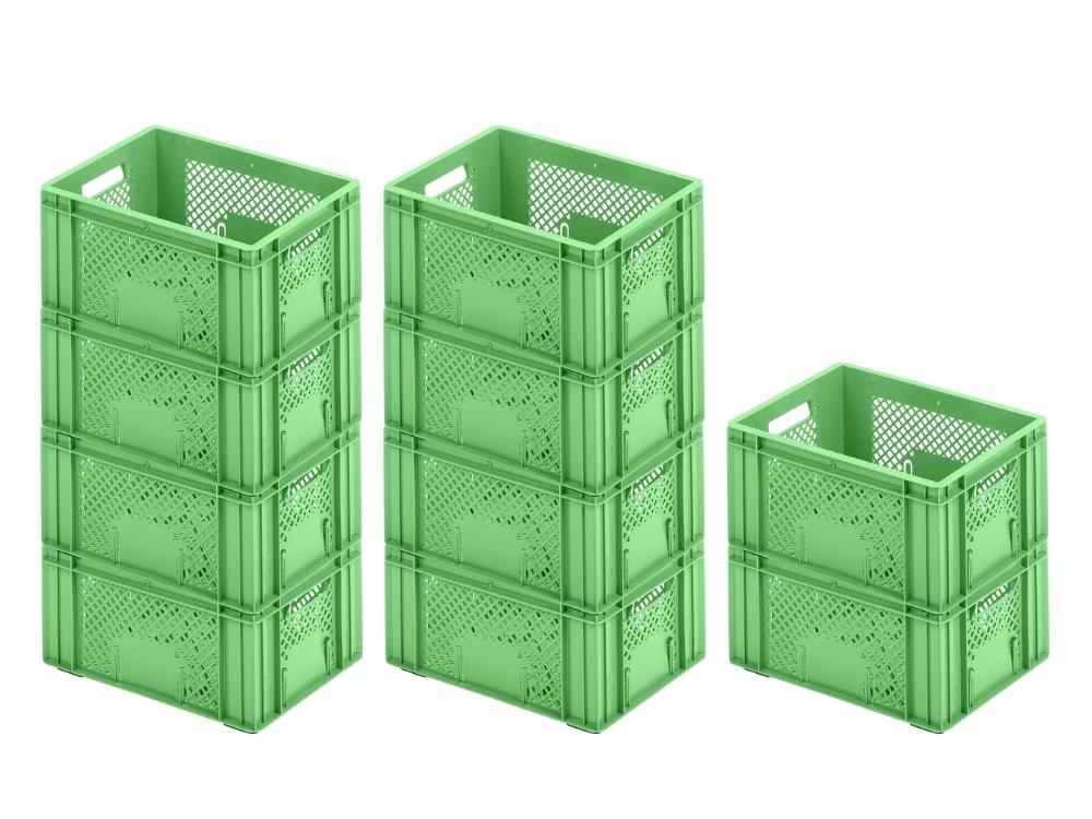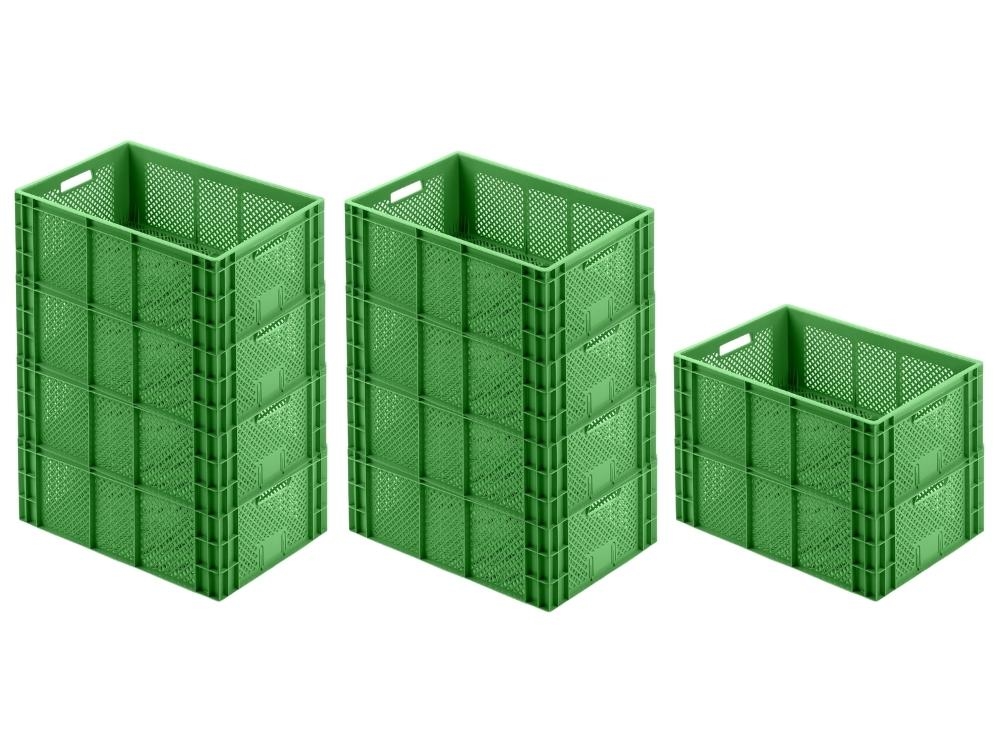 SuperSparSet 4x Eurobehälter Obst- und Gemüsekasten | HxBxT 22x40x60cm | 43 Liter | Grün | Obst-Gemüsekiste, Obstkorb, Transportbox