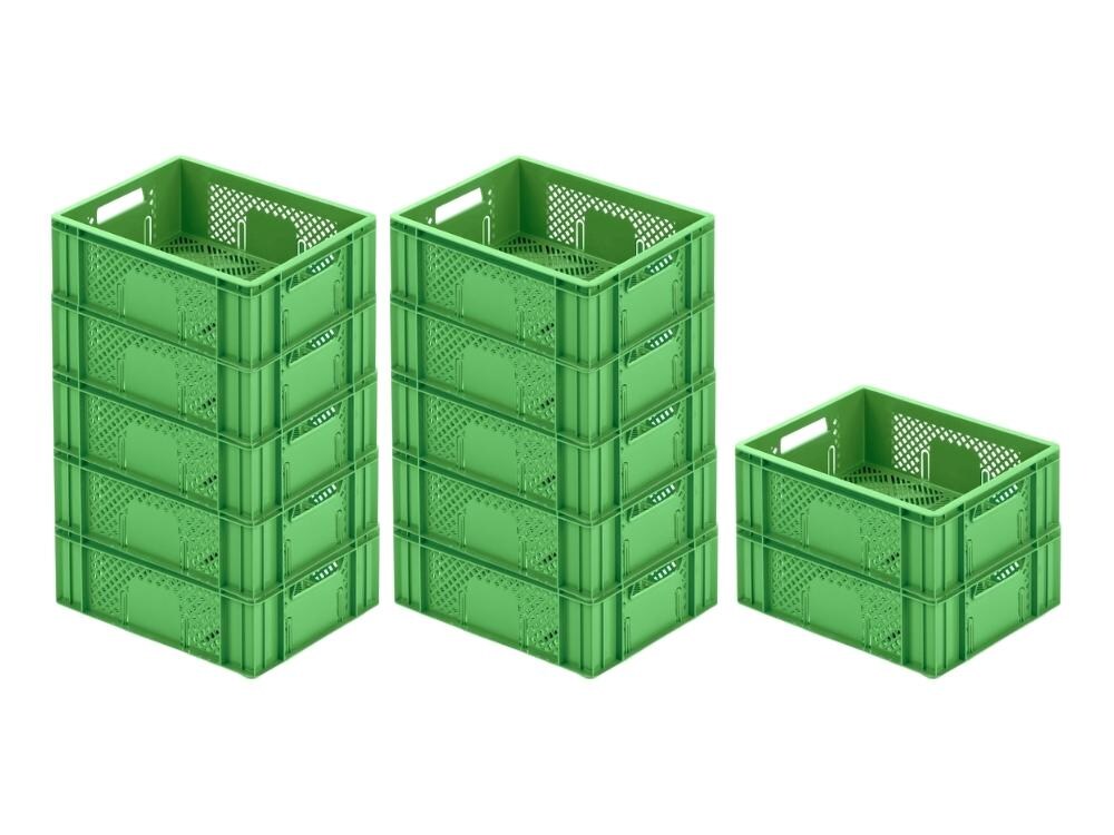 SparSet 10x Eurobehälter Obst- und Gemüsekasten | HxBxT 19x30x40cm | 18 Liter | Grün | Obst-Gemüsekiste, Obstkorb, Transportbox