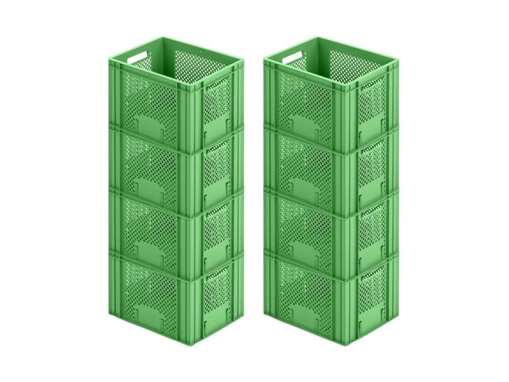 PROREGAL 8x Eurobehälter Obst- und Gemüsekasten | HxBxT 27,2x30x40cm | 26 Liter | Grün | Obst-Gemüsekiste, Obstkorb, Transportbox