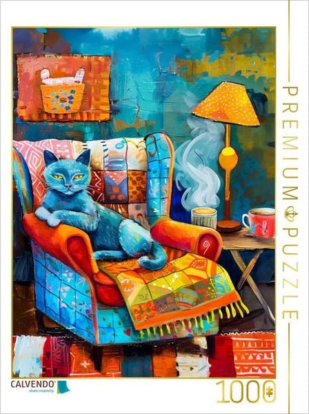 CALVENDO Puzzle Gemütliche Katze auf dem Sessel. Modernes Katzen-Porträt | 1000 Teile Lege-Größe 64x48cm Foto-Puzzle für glückliche Stunden