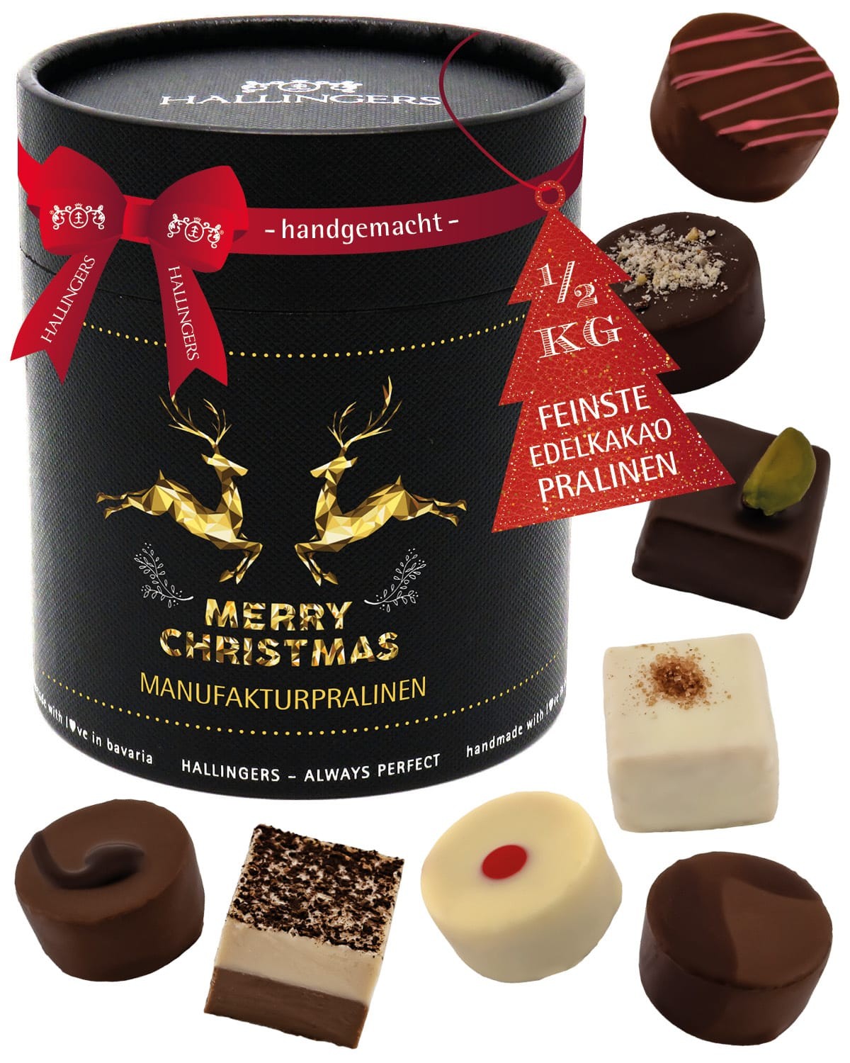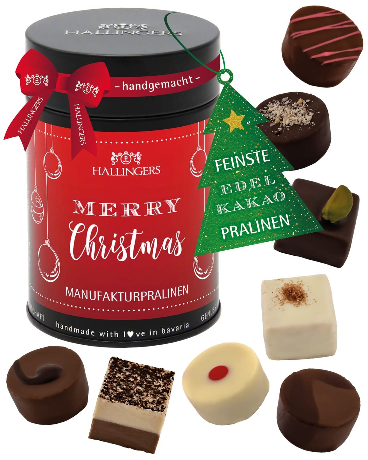 Pralinen Geschenk Weihnachten – ohne Alkohol, handgemacht aus Premium Edelkakao, edle Geschenkdose "Merry Chistmas XXL", Geschenkidee für Frauen & Män