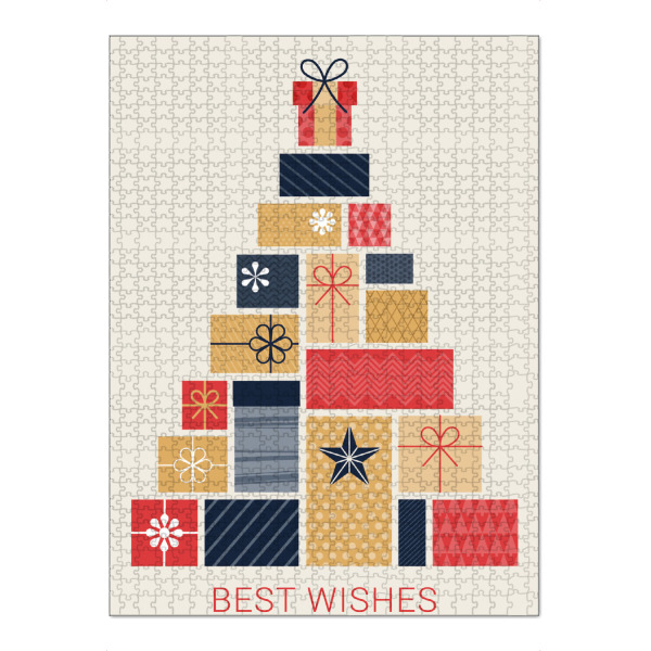 Puzzle Ravensburger "Best wishes - Geschenketurm" artboxONE - Typografie,Weihnachten - Weihnachten,Illustration,Bunt,Geschenke - Bild weihnachten
