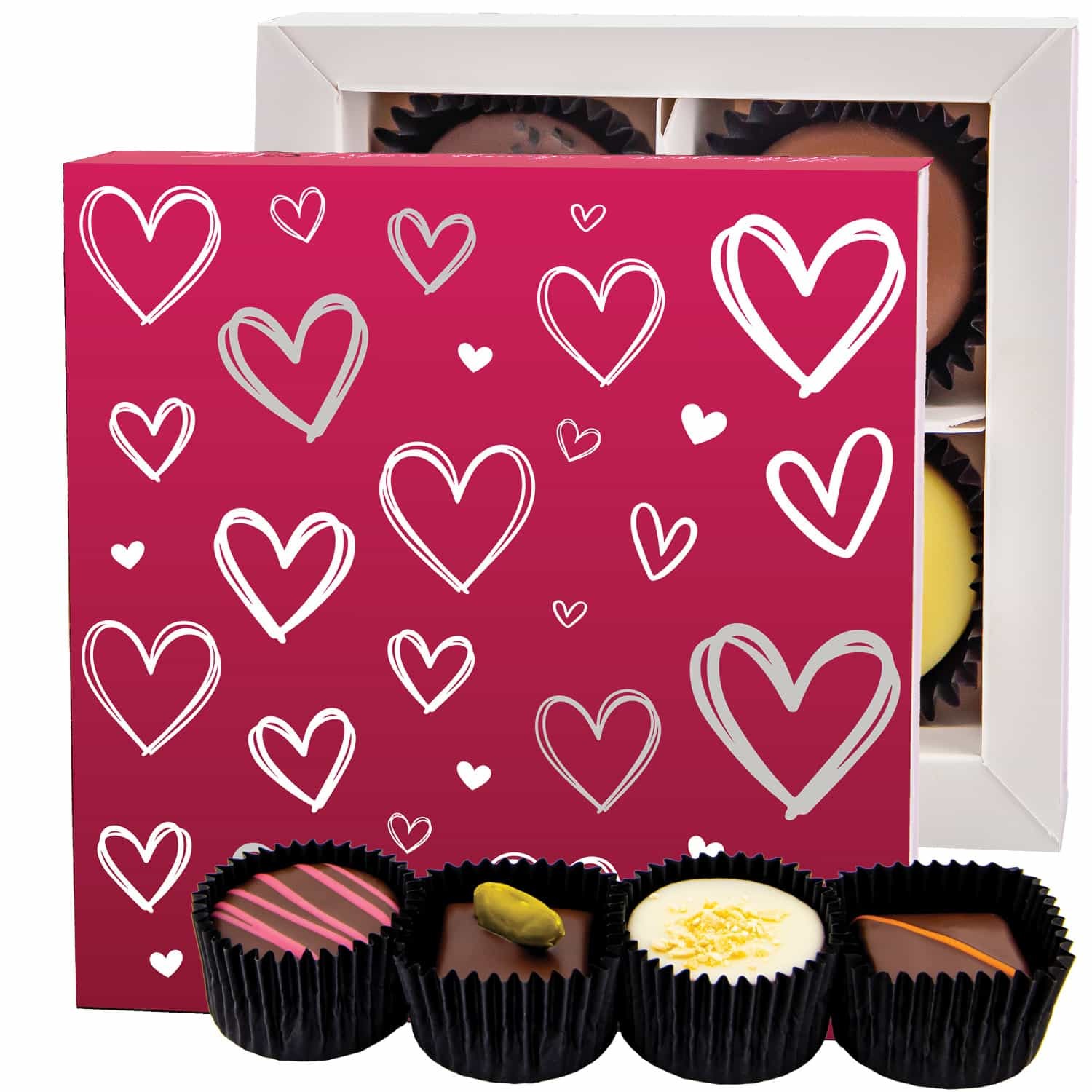 Pralinen Geschenk Valentinstag – handmade ohne Alkohol aus Edelkakao-Schokolade edle Geschenkbox "Love Pink", Confiserie-Qualität für ihn sie Freundin