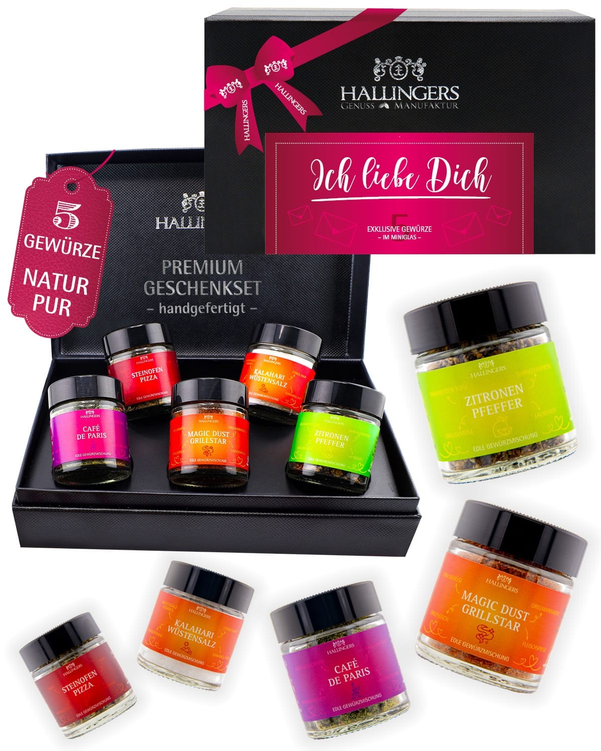 Grillgewürze Geschenkset Valentinstag – 5 Premium Gewürze zum Grillen & BBQ in edler Geschenkbox, Gewürze Set "Ich liebe Dich PINK", liebe Geschenkide