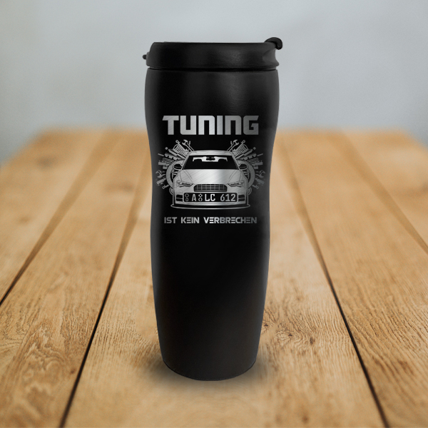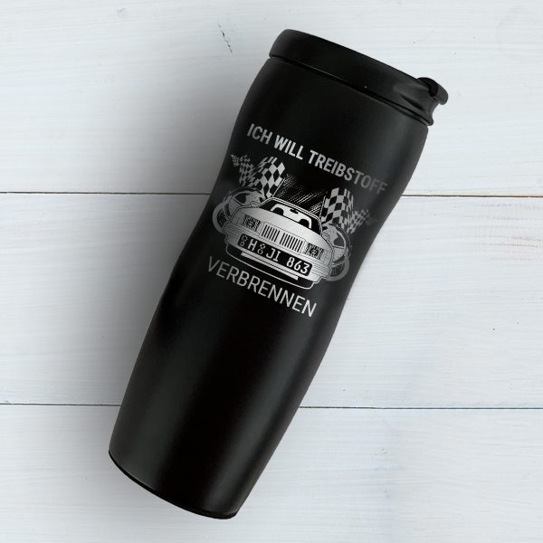 Personalisierter Thermobecher mit Auto-Modell und Kennzeichen: Ideales Geschenk für Kaffeeliebhaber unterwegs und Auto-Enthusiasten. - auto4style