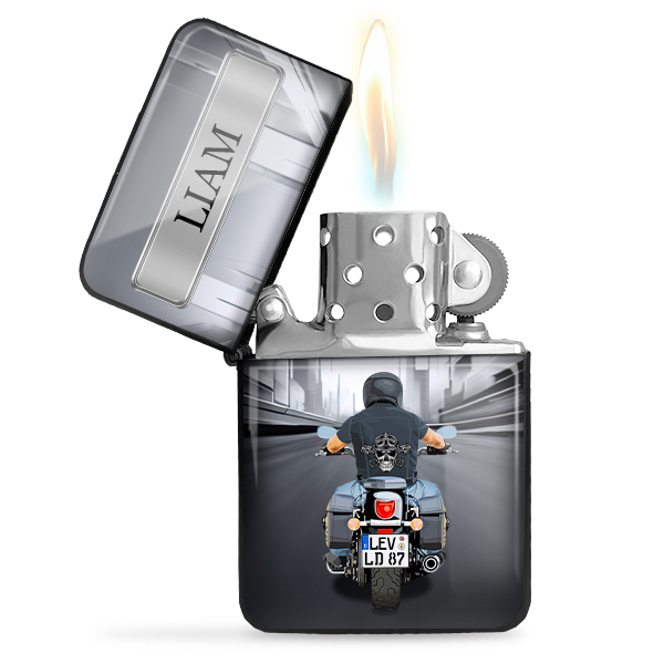 Geschenk Feuerzeug - Personalisiertes Feuerzeug mit Namen und Nummernschild, ideale Geschenke für Motorradfahrer und Männer. - auto4style
