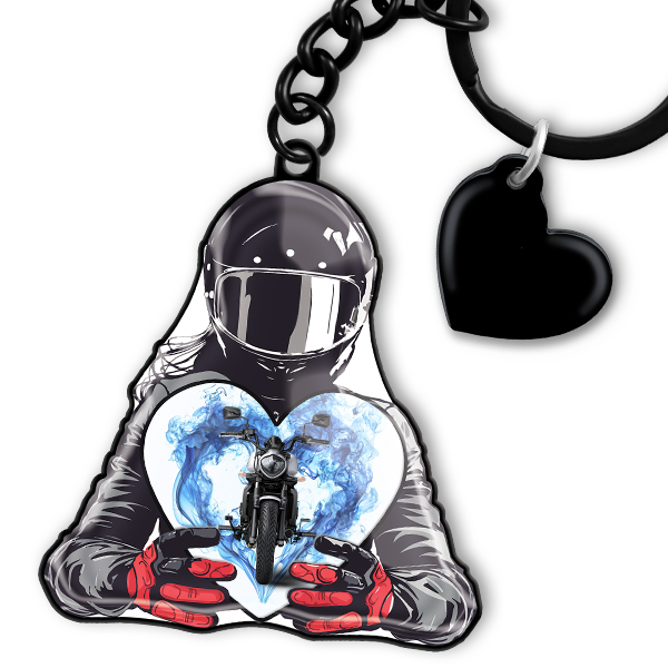 Motorrad Schlüsselanhänger - Personalisierter Schlüsselanhänger mit Motorradfahrer und Herz | Perfektes Geschenk für Männer und Motorradfahrer