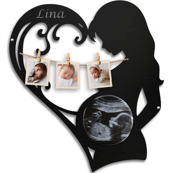 Wanddeko Metall mit Ultraschallbild u. Wunschfotos – Personalisierte Wanddeko als Geschenk für Schwangere zur Erinnerung an die Schwangerschaft