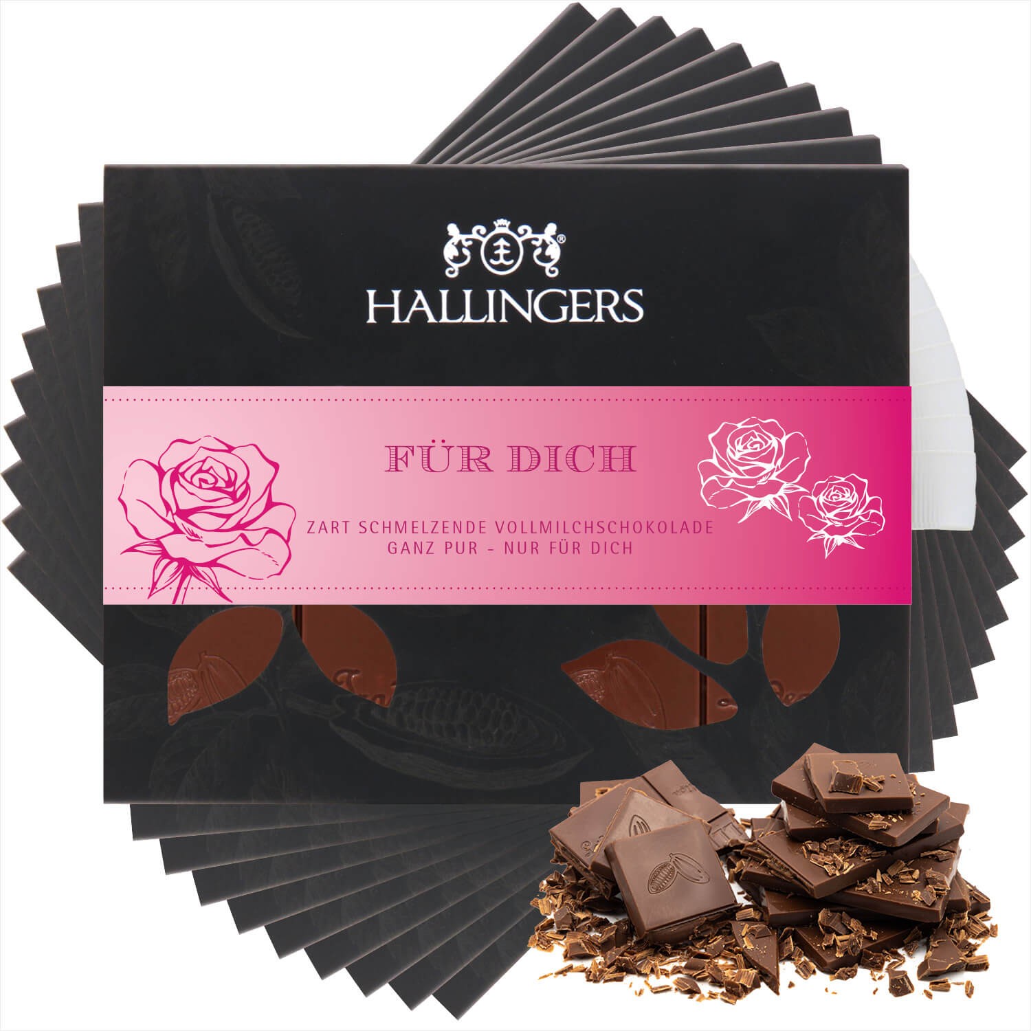 Vegane Schokolade Geschenk Valentintstag - handmade ohne Alkohol aus Edelkakao, edle Tafel-Geschenkbox "10x Für Dich", Vollmilch Pur - für ihn sie Fre