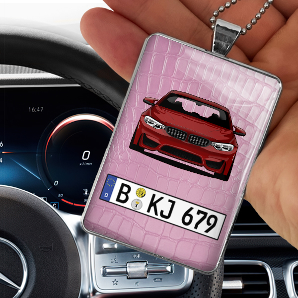 Rückspiegelanhänger - Personalisierte Spiegelkette mit Ihrem Fahrzeugmodell und Kennzeichen. Spezielle Geschenkideen für Männer, Auto-Enthusiasten!