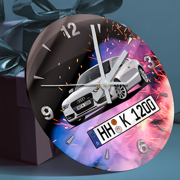 Individuell gestaltenes Frauen Geschenk Wandunhr: zum Führerschein bzw. als Jahrestag Geschenk. Mit Auto, Kennzeichen, Foto! Geschenkideen Frauen