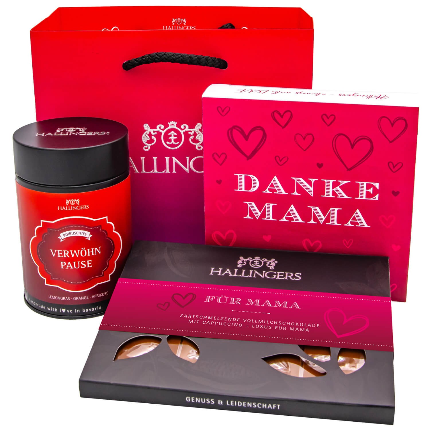 Geschenkkorb Geschenkset Muttertag – Feinkost Mix mit Schokolade Pralinen & Tee, in edler Geschenktasche, besonderes Premium Gourmet Geschenk für Mama