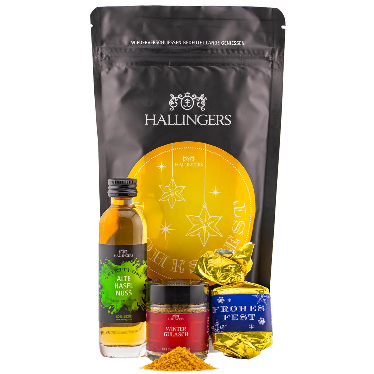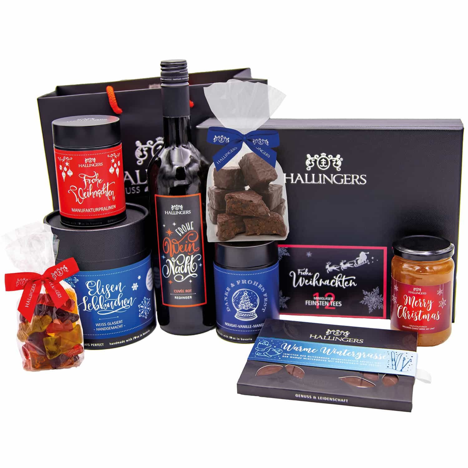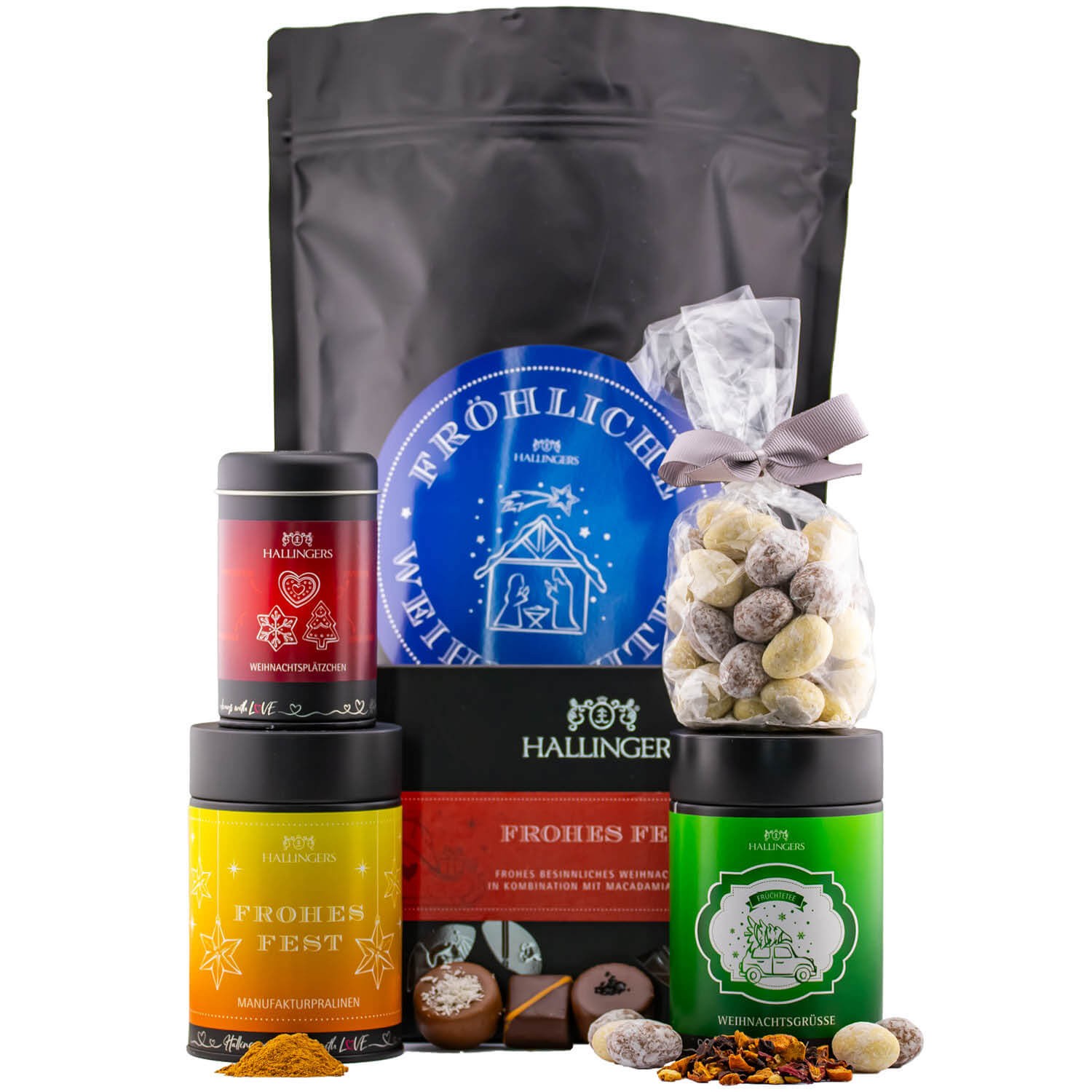 Geschenkkorb Geschenkset Weihnachten – Feinkost Mix, aus der Manufaktur, in edler Wundertüte, weihnachtliches Geschenk für Frauen & für Männer, "Fröhl