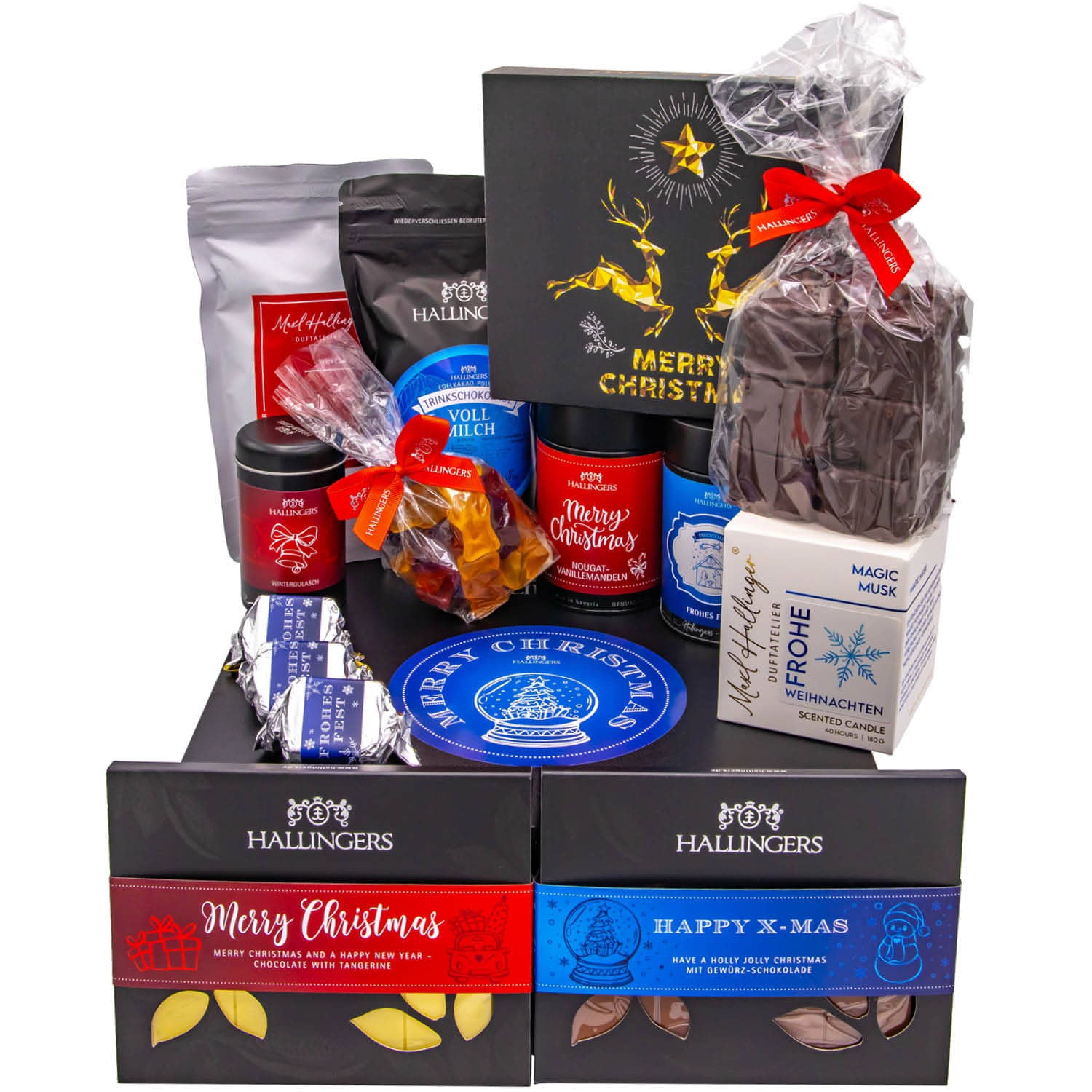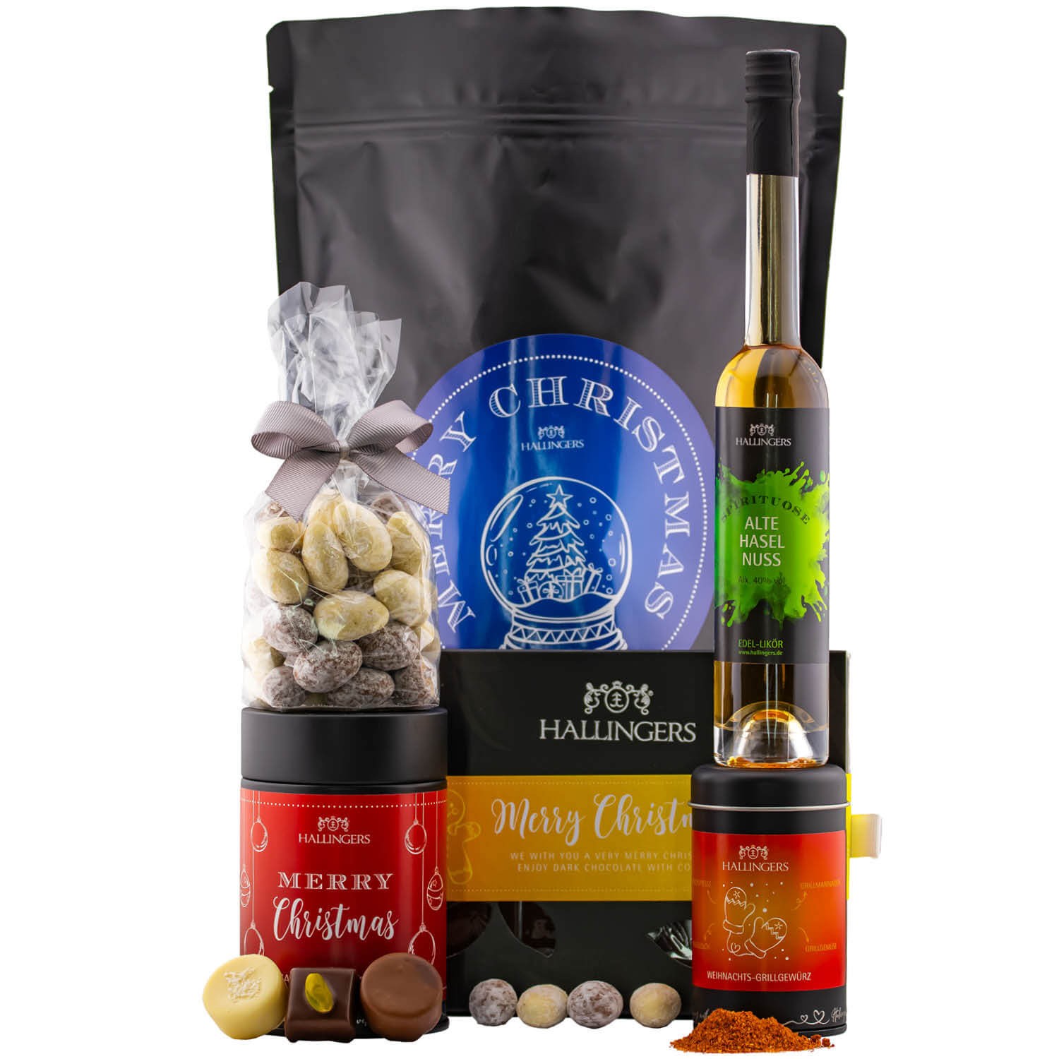 Geschenkkorb Geschenkset Weihnachten – Feinkost Mix, aus der Manufaktur, in edler Wundertüte, weihnachtliches Geschenk für Frauen & für Männer, "Merry