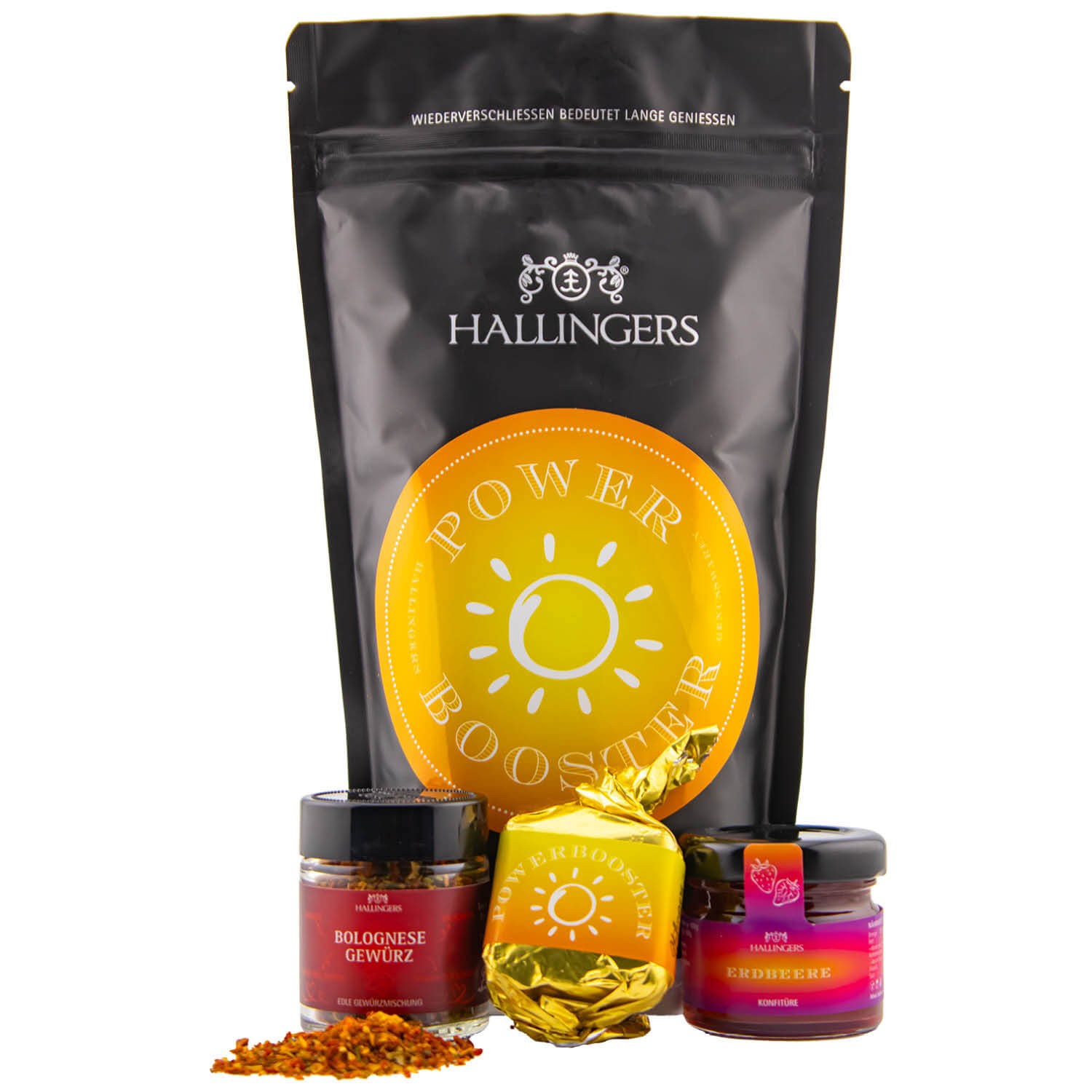 Geschenkkorb Geschenkset – Feinkost Mix, Energie Wundertüte Nougat Busserl Bolognese Gewürz & Erdbeer Konfitüre für Power (69g) - Power Booster
