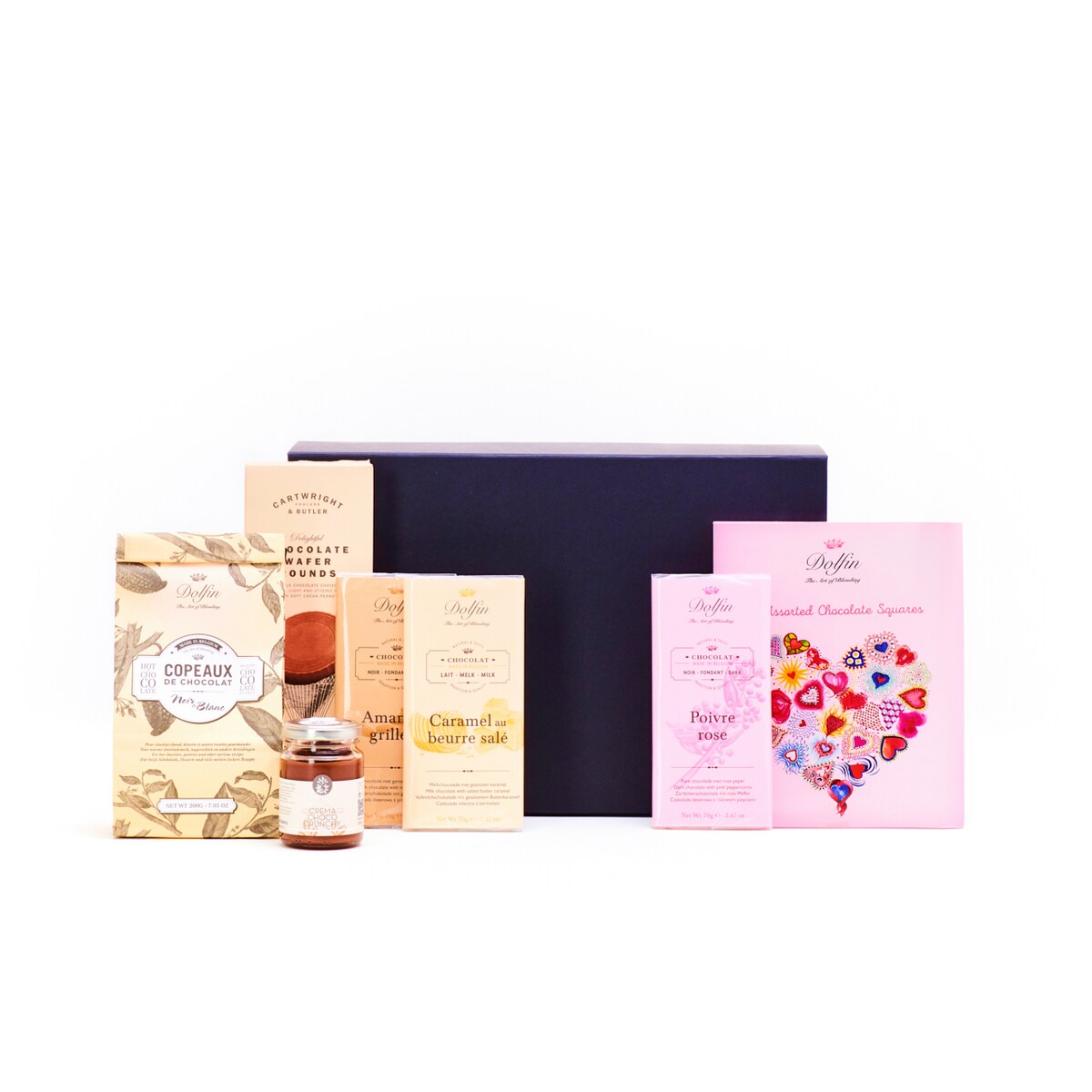 fein und kostbar Geschenkkorb, Schokofreuden, Box, 6-teilig, gefüllt mit Schokoladen-Spezialitäten