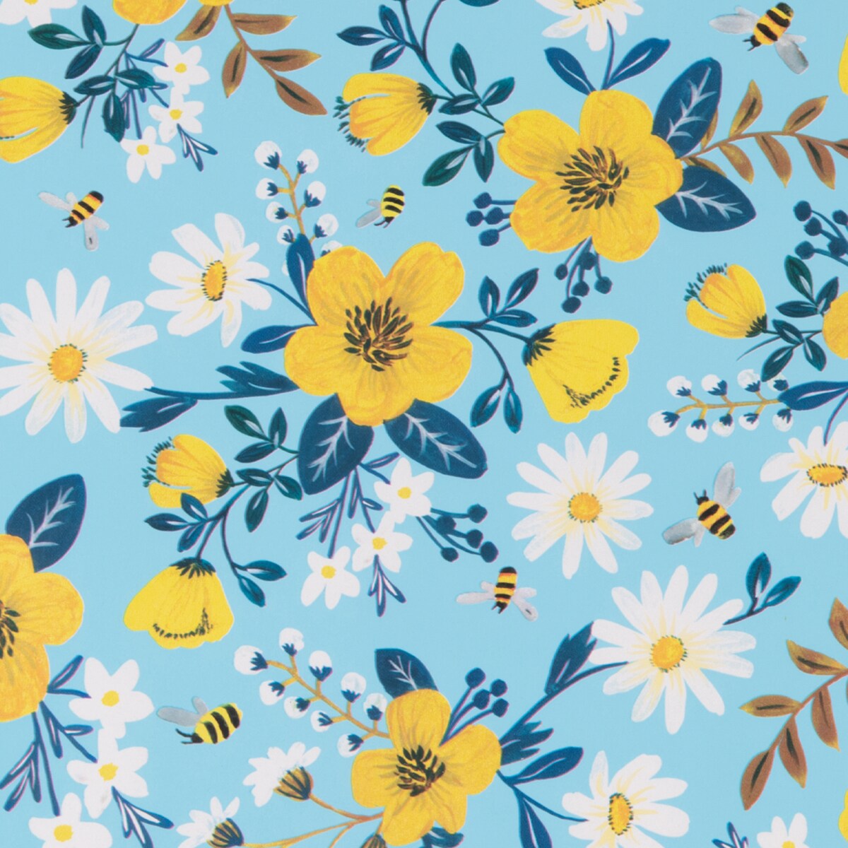 Star 2m Geschenkpapierrolle 70cm Bienen Blumen mit Motiv Natur Floral Neutral Geburtstag Geschenkpapierrolle Kindergeburtstag Packpapier Hellblau Gelb